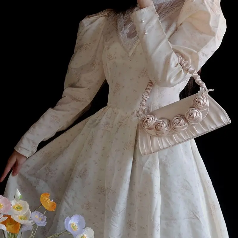 LIZAKOSHT  -  Top-Handle Bags for Women Vintage Fashion Patchwork Flower Clutches Office Lady Elegant Fairy Handbags Y2k Aesthetic All Match