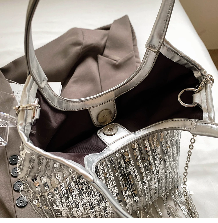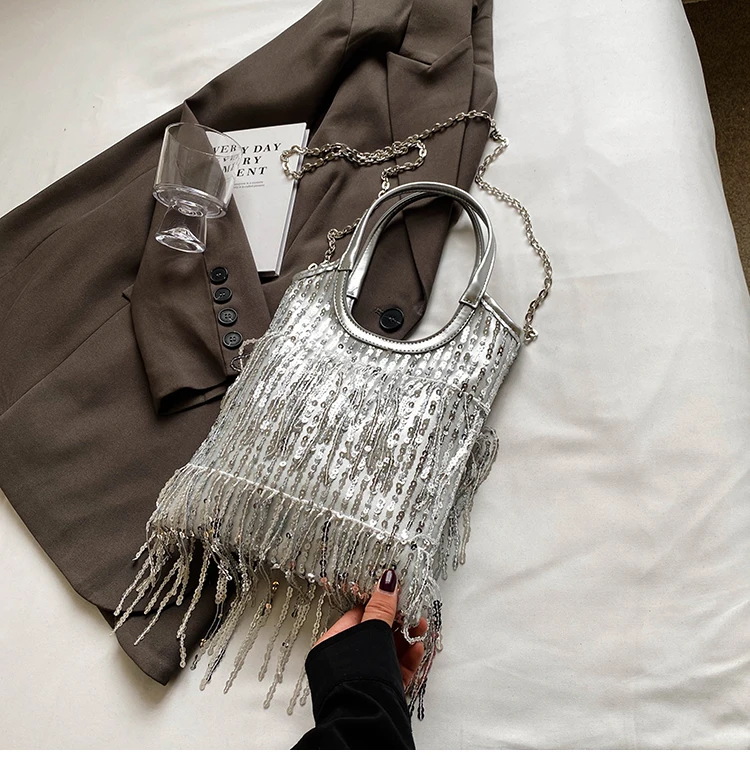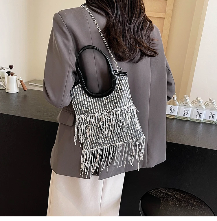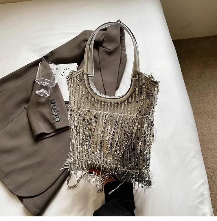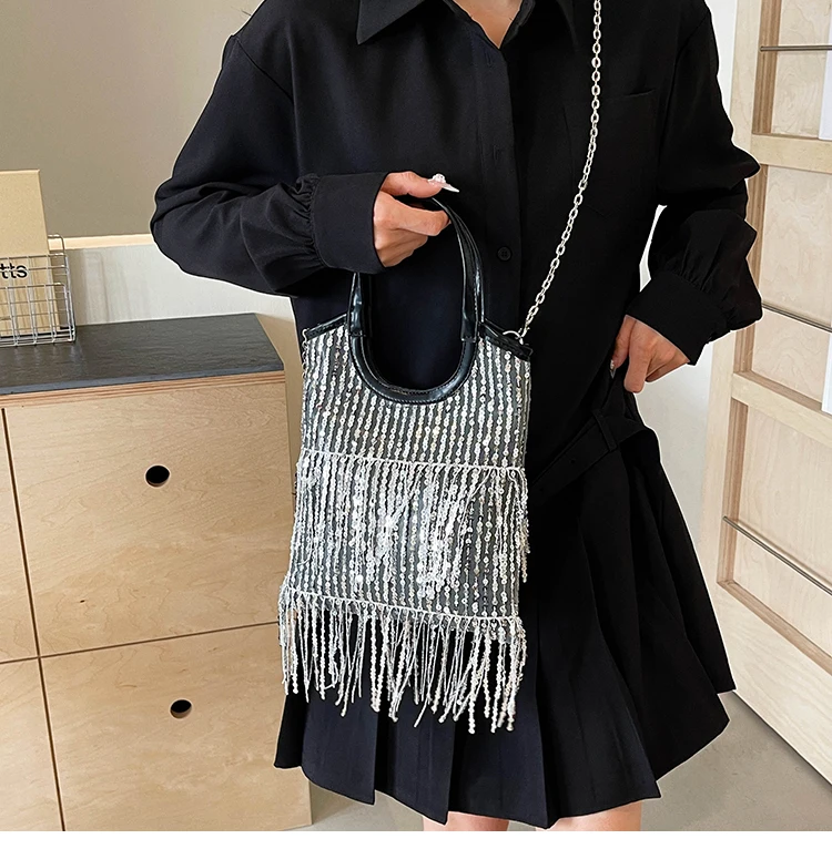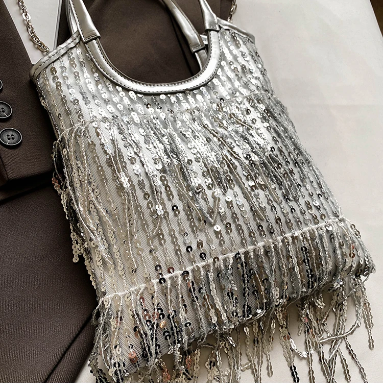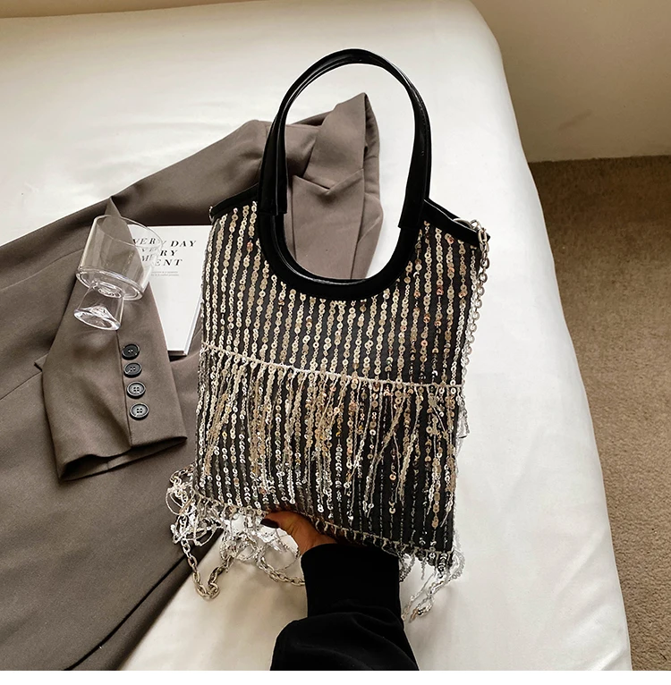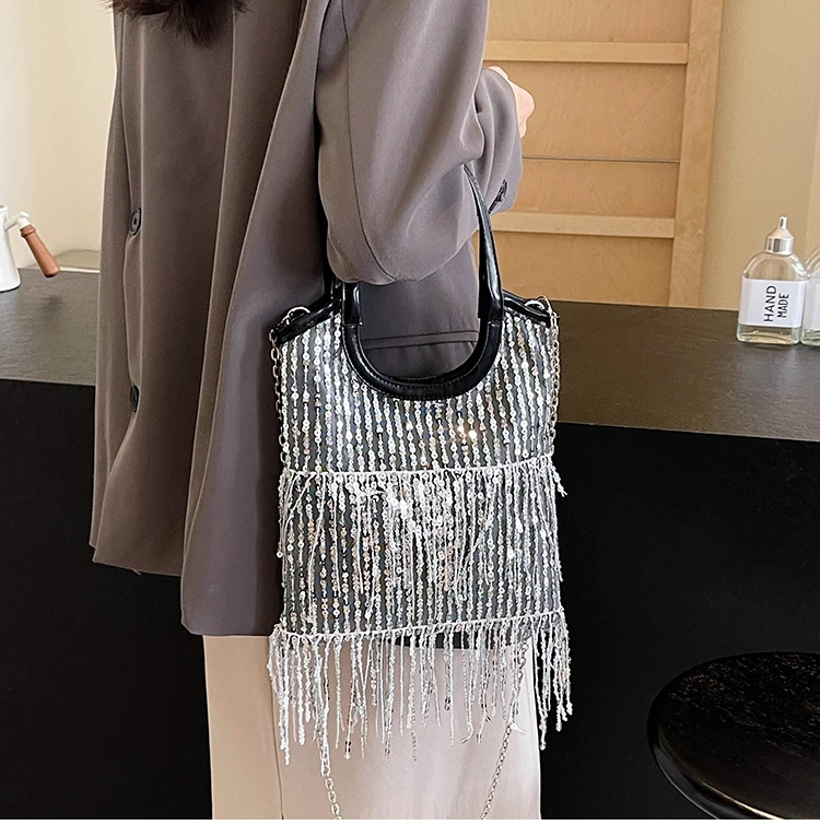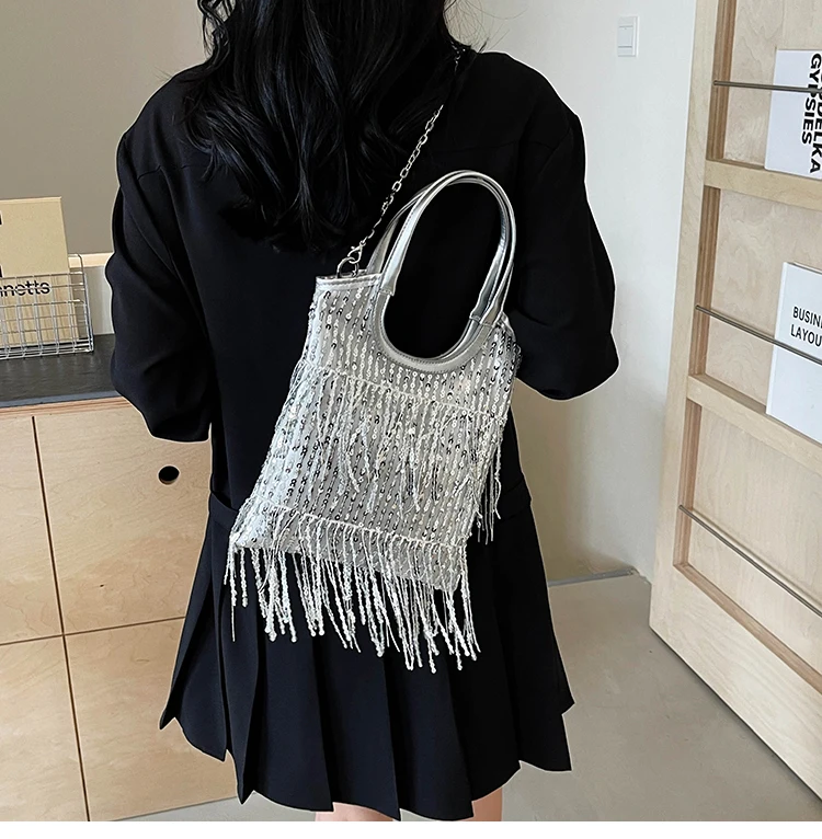 LIZAKOSHT - Trendy Design Sequin Tassels Tote Handbags and Purses Women Shoulder Crossbody Bags 2024 New Messenger Clutches Bag High Quality