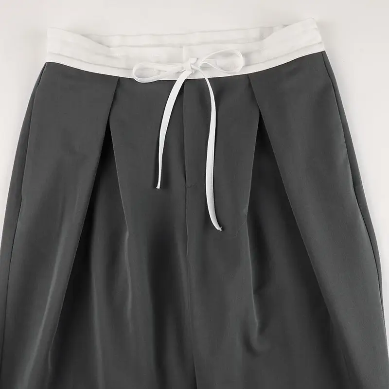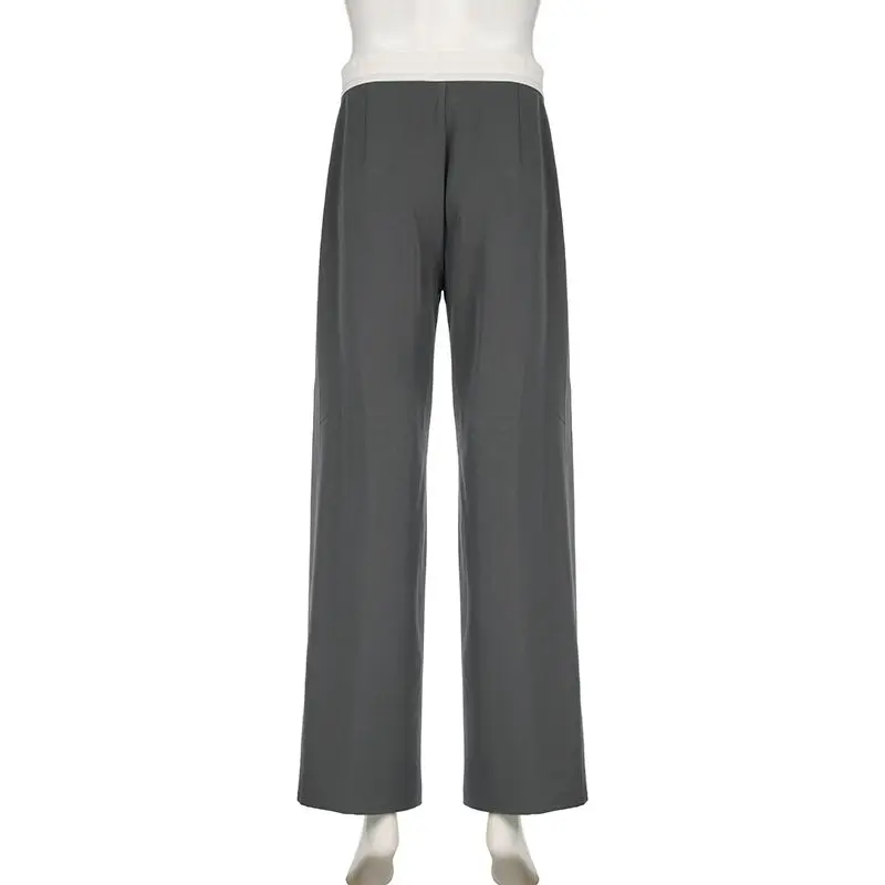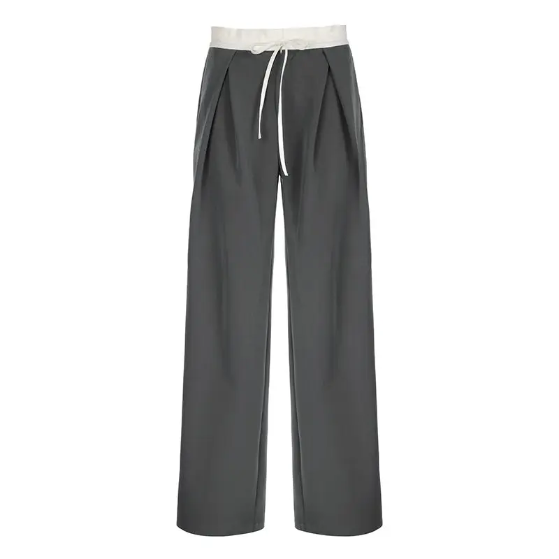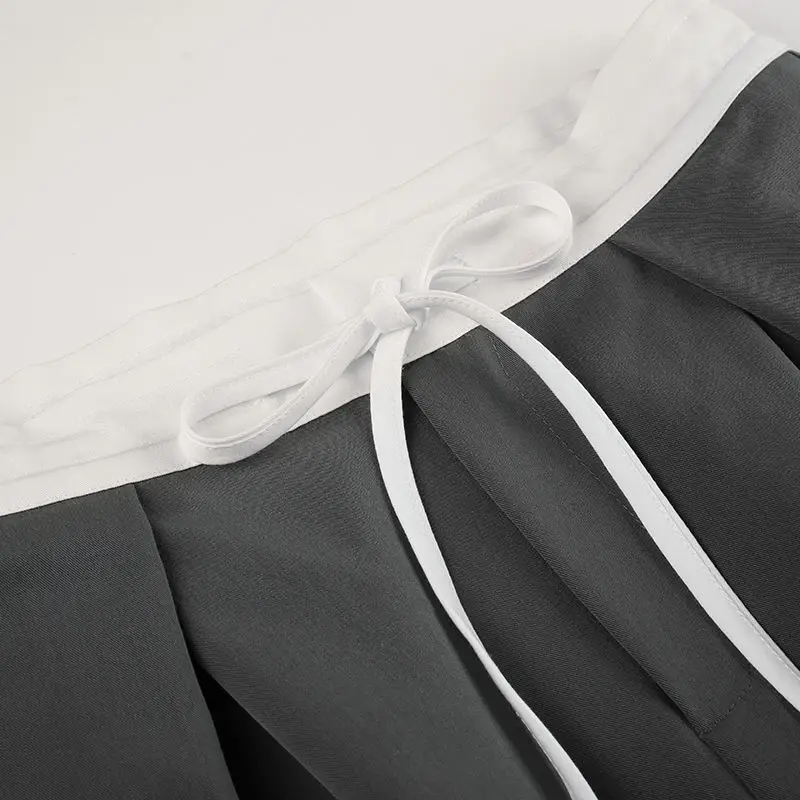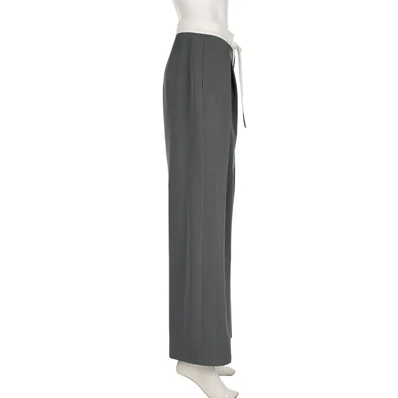 LIZAKOSHT - Trousers Fold Assorted Colors Frenulum Pants Concise Lace Up Shirring Women Casual All-Match Loose Straight Slacks Street Style