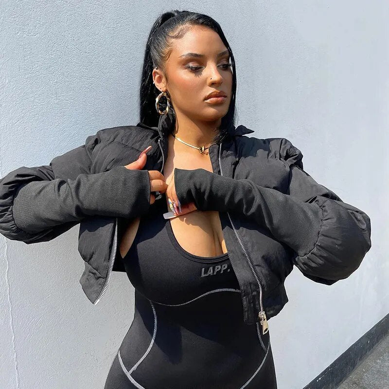 Lizakosht Two-wear Women's Short Down Down Cotton Thick Drawstring Waistcoat Jacket Parka Coat Zipper Winter Bubble Jacket Warm Streetwear