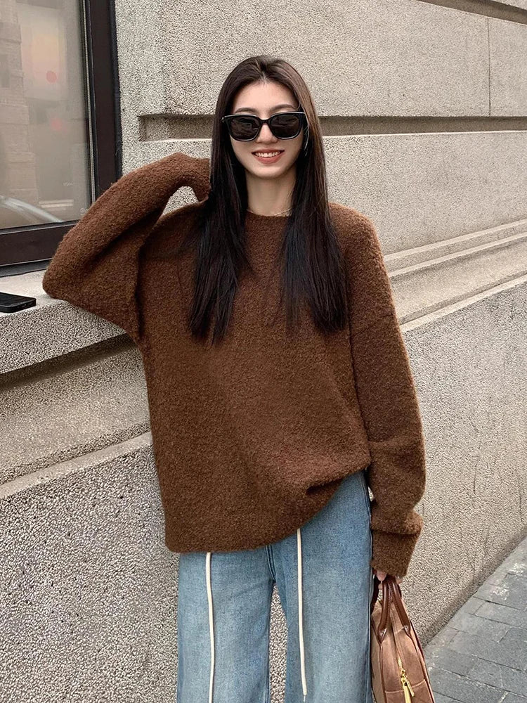 LIZAKOSHT  -  Vintage Brown Knit Sweater Women Autumn Winter Loose Casual Lazy Wind Pullovers Streetwear Harajuku Baggy Long Sleeve Jumpers