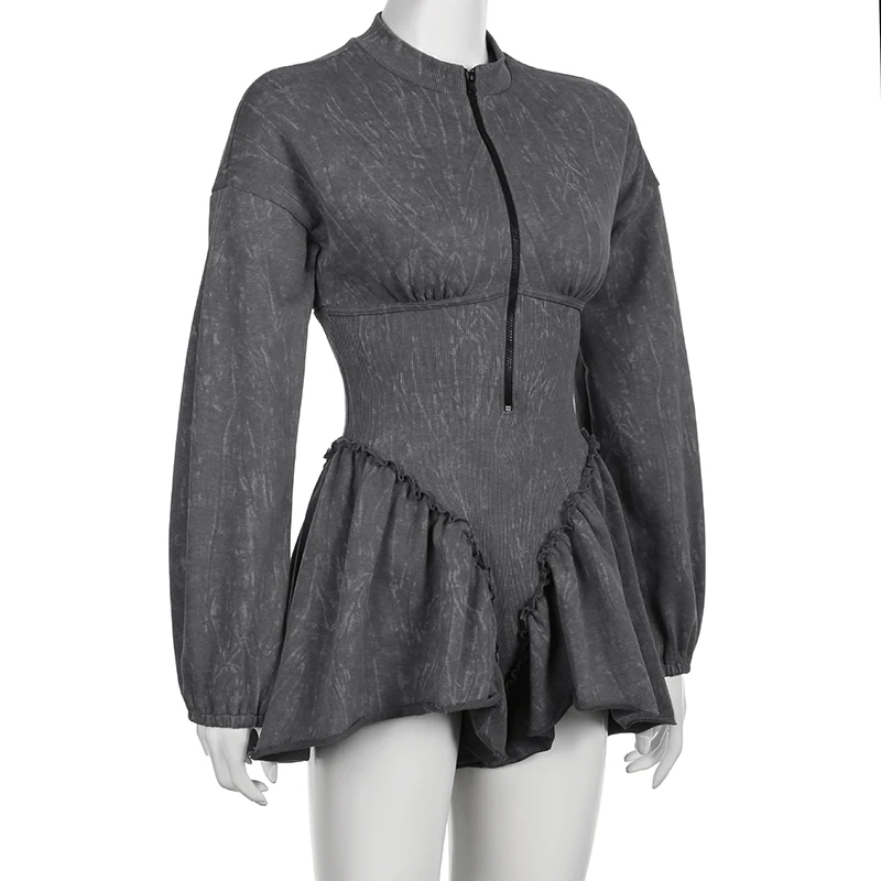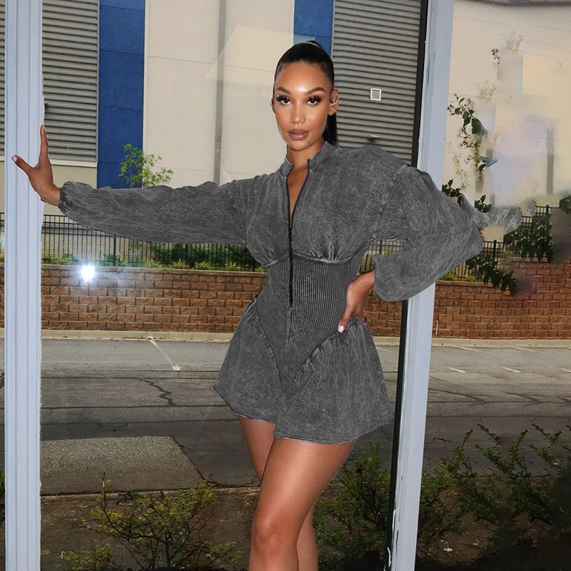 LIZAKOSHT - Vintage Distressed Denim Jumpsuit Women Fashion Body-shaping Romper One Piece Zipper Bodysuit Streetwear Playsuit Mujer