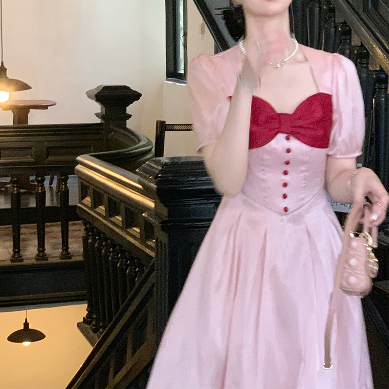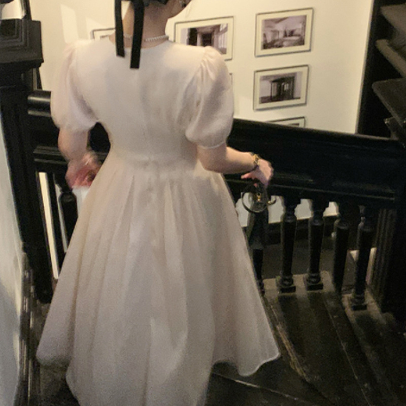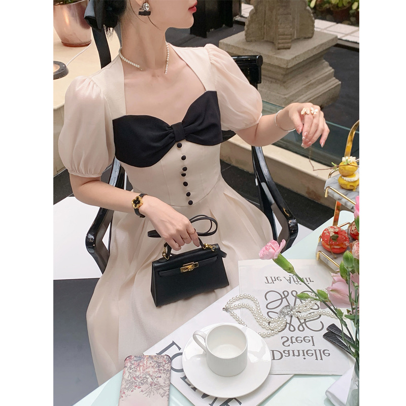 LIZAKOSHT - Vintage Elegant Princess Style Dresses Women Square Collar Puff Sleeve Evening Party Bow Dresses Korea Sweet One-Piece Dress New
