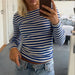 LIZAKOSHT - Vintage Preppy Style Y2K Crop Tops Clothes Cottage Striped Rib Knitted T-shirt Women Long Sleeve Casual Basic Tees Pullovers
