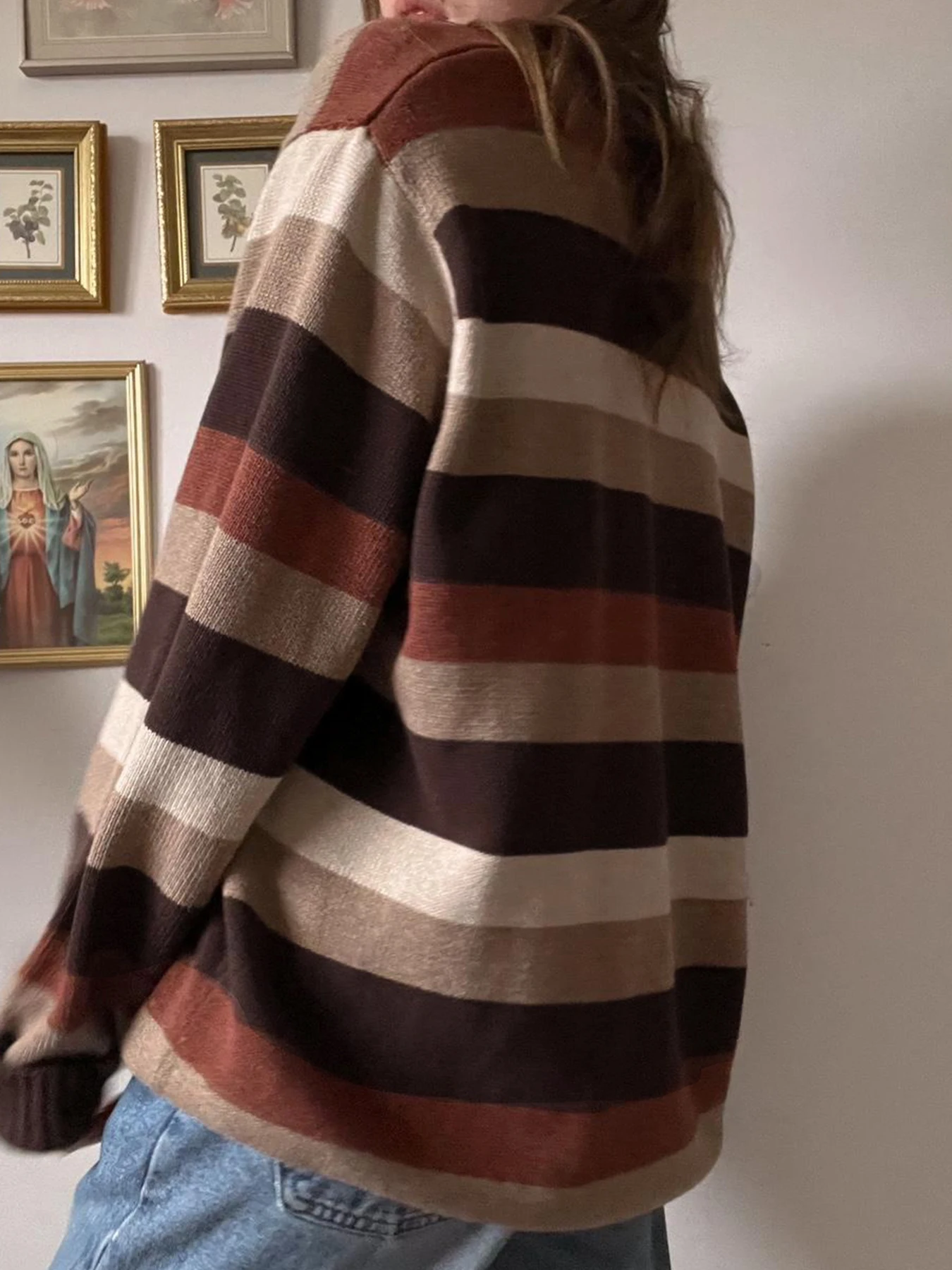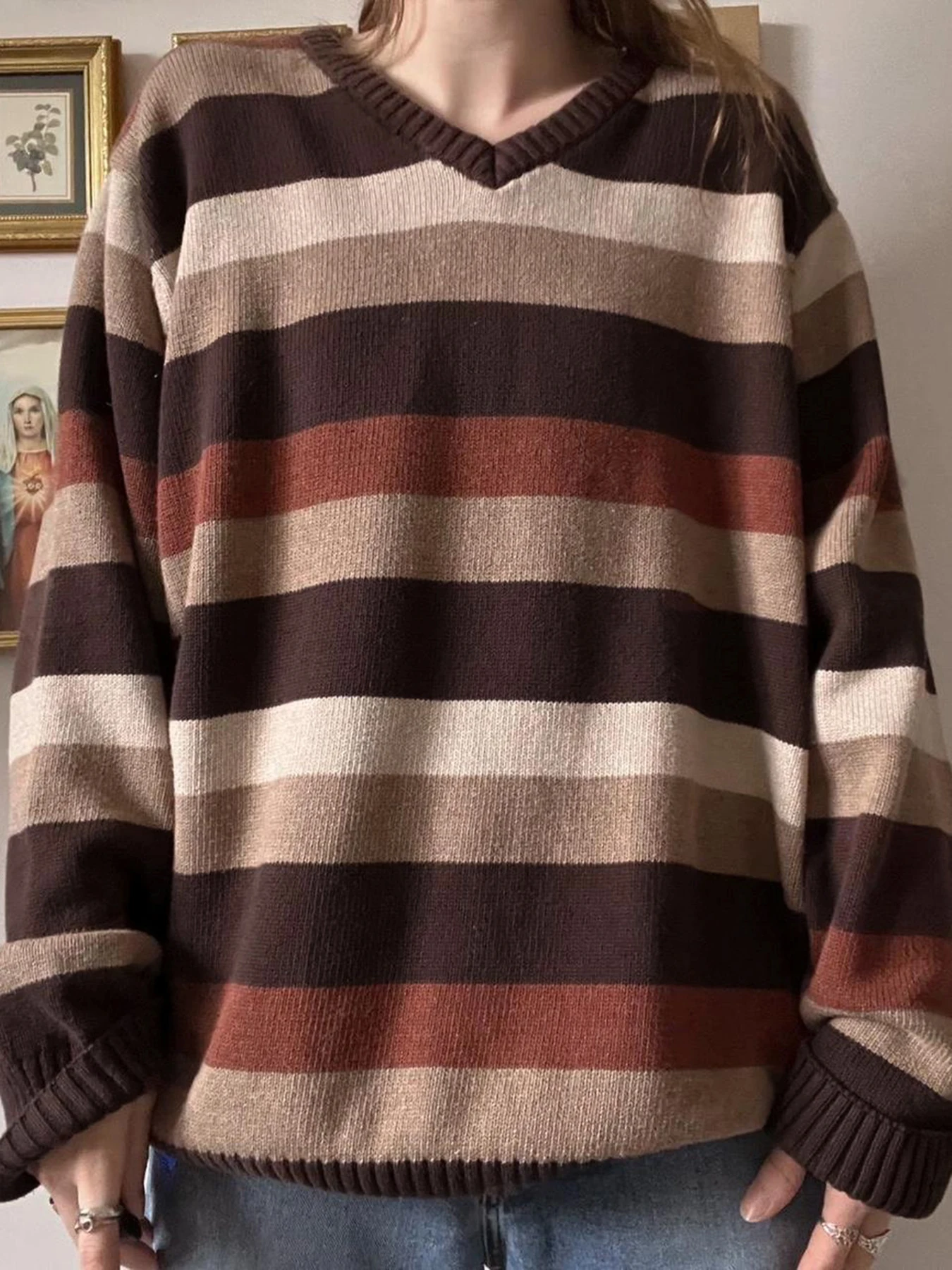 LIZAKOSHT  -  Vintage Striped Knitted Sweaters Casual Loose V-Neck Long Sleeve Pullovers Women Autumn Winter Fashion Streetwear