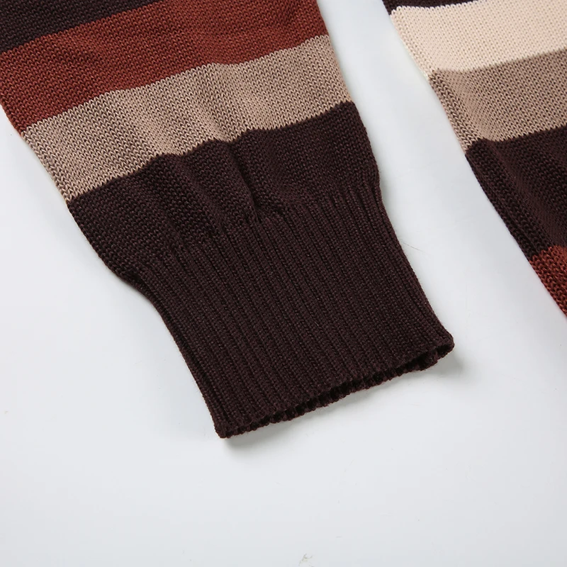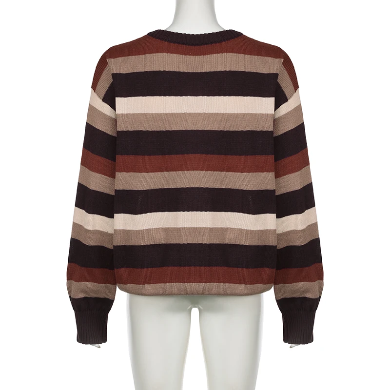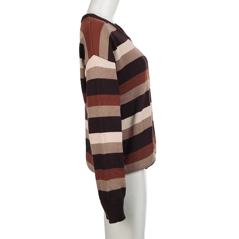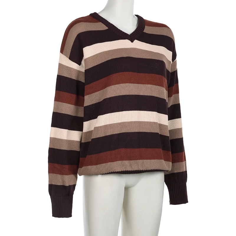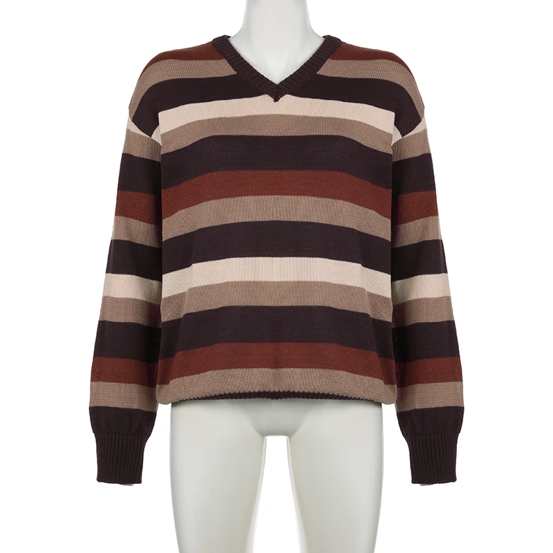 LIZAKOSHT - Vintage Striped Knitted Sweaters Casual Loose V-Neck Long Sleeve Pullovers Women Autumn Winter Fashion Streetwear