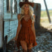 LIZAKOSHT  -  Western Cowgirl Dress Vintage Suspender Floral Print Irregular Hem Boho Style Summer Beach Party Festival Maxi Dress