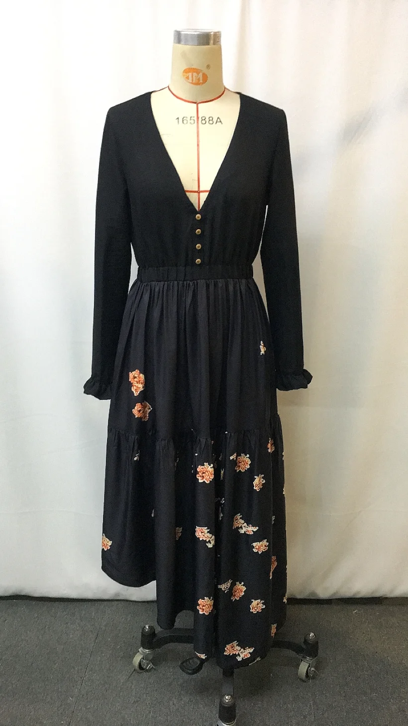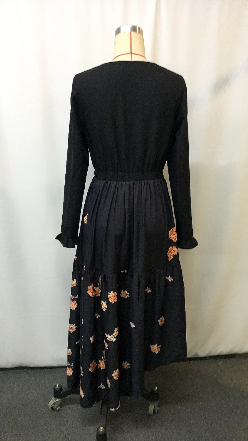 LIZAKOSHT  -  Western Cowgirl Floral Vintage Dress - Ethnic Print Lace-Up Boho Chic Women's Party Dress with Ruffled Hem & Puffed Sleeves