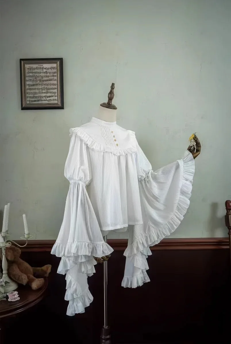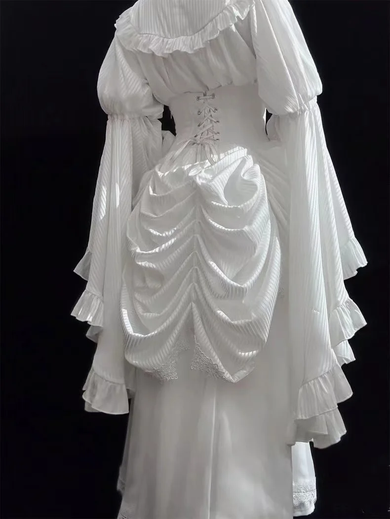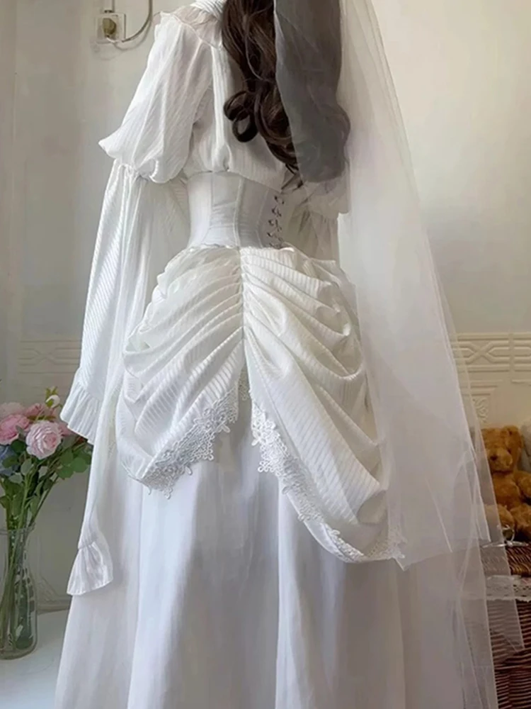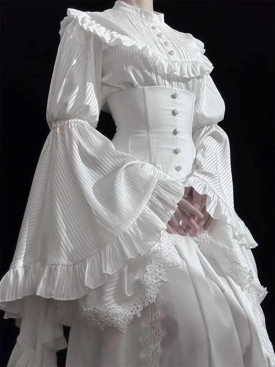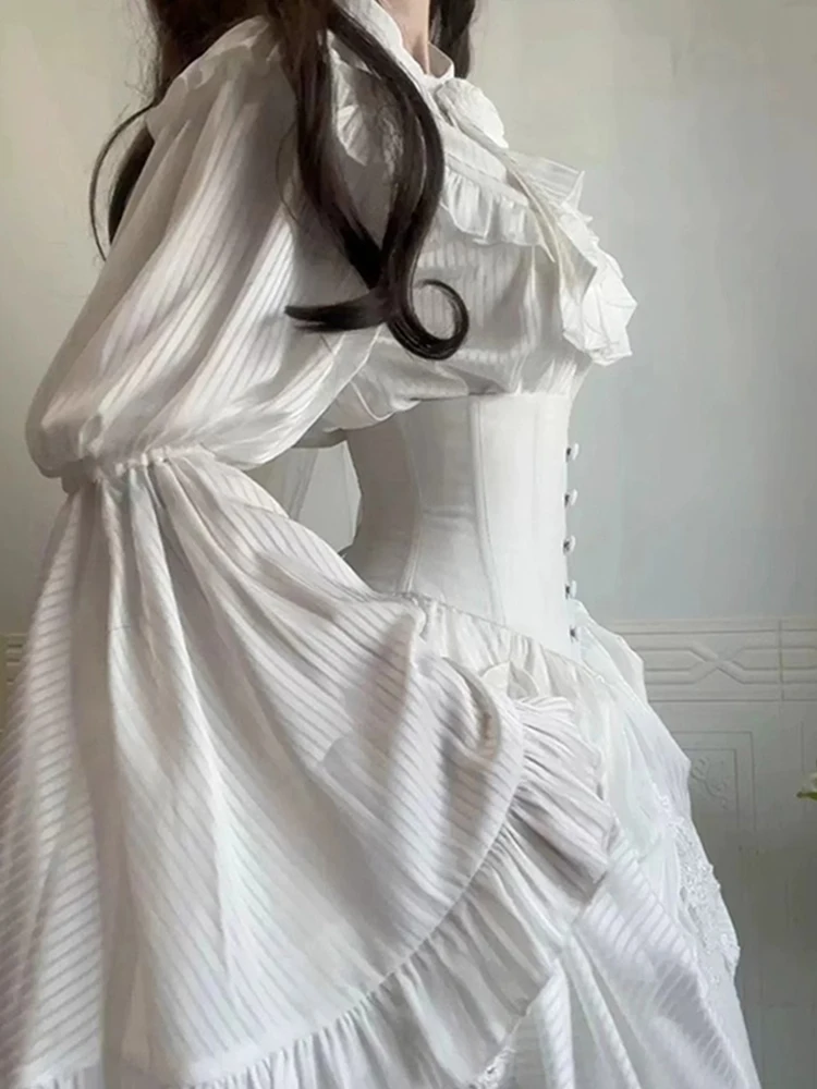 LIZAKOSHT - White Gothic Style Lolita Ji Sleeve Shirt Fishbone Skirt Suit for Women