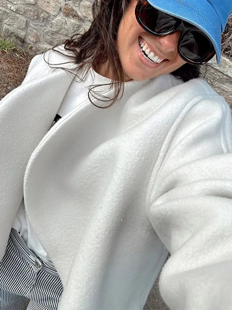LIZAKOSHT - White Woolen Coat Women Autumn Winter Thick Warm Cardigan Jacket Female Fashion Casual Loose Long Sleeve High Street Outerwear