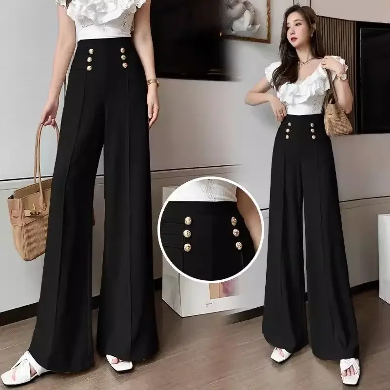 LIZAKOSHT  -  Wide Leg Pants for Women with High Waist and Drooping Sensation New Black Flared Pants for Women with Straight Leg and Slimming