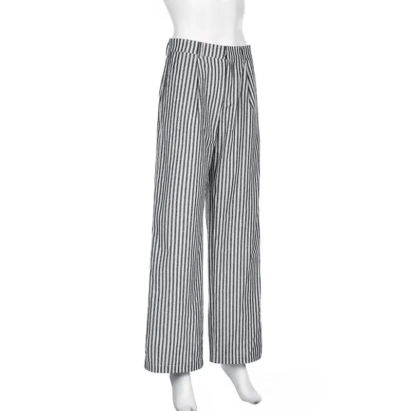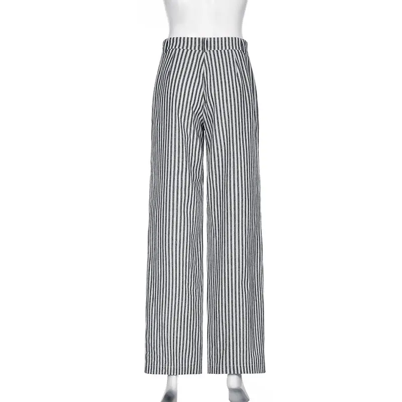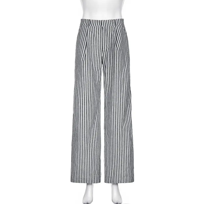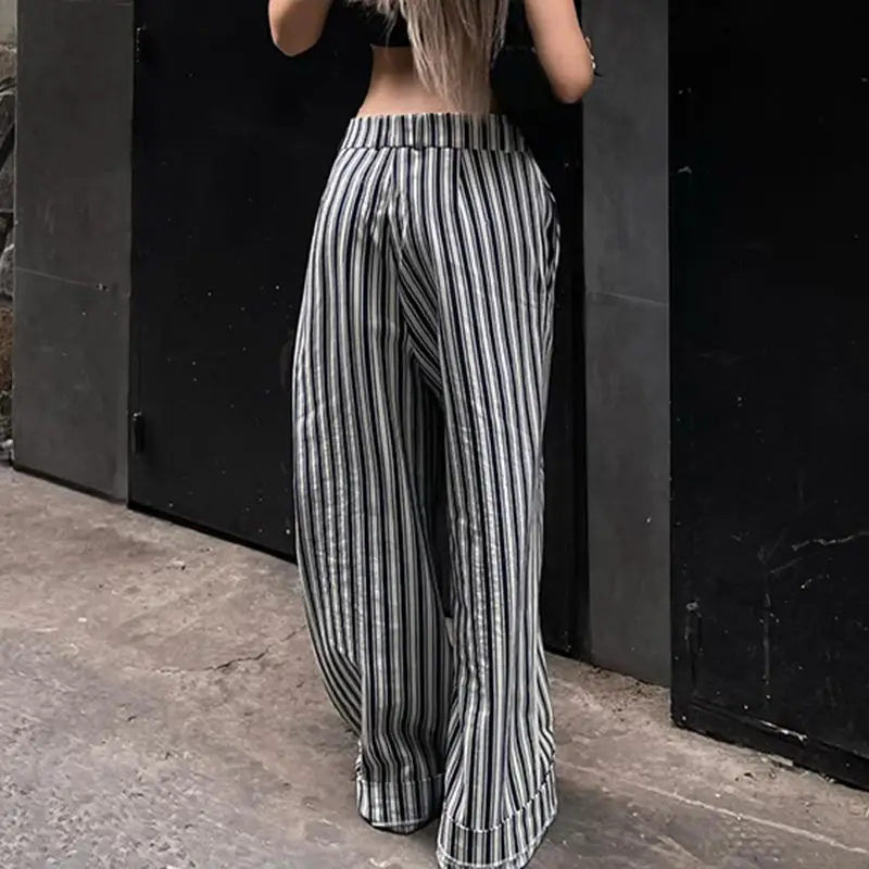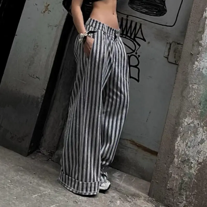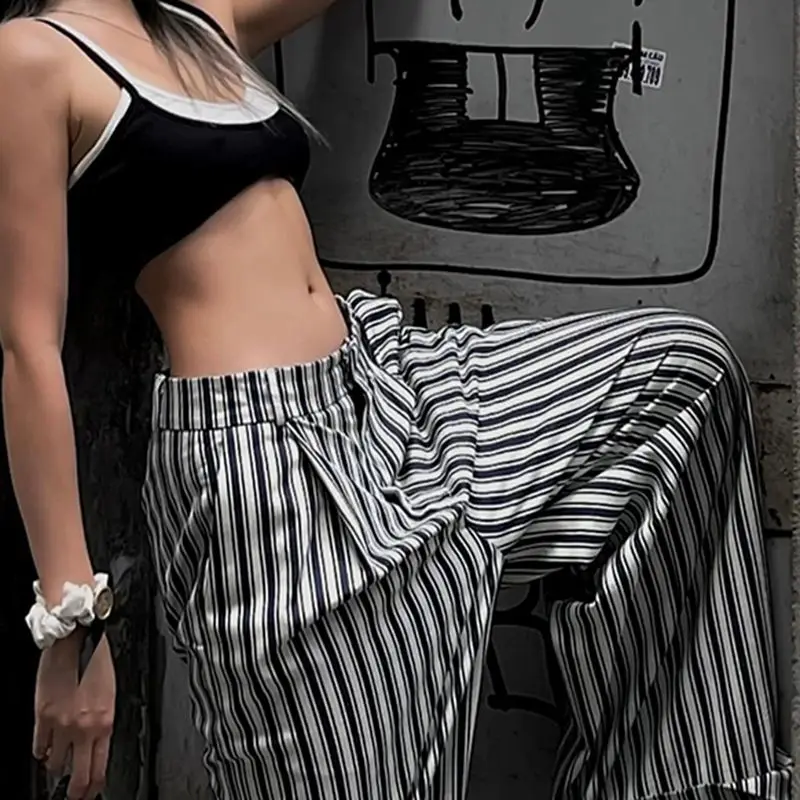 LIZAKOSHT - Wide Leg Pants Striped Low Waist Women Old Money Style American Streetwear Fashion Baggy Trousers Floor-Length Trousers