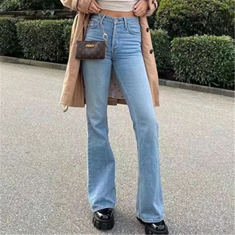 Lizakosht Wide leg plush jeans for in new fashion straight tube waist slimming mopping micro flare pants for women bell bottoms