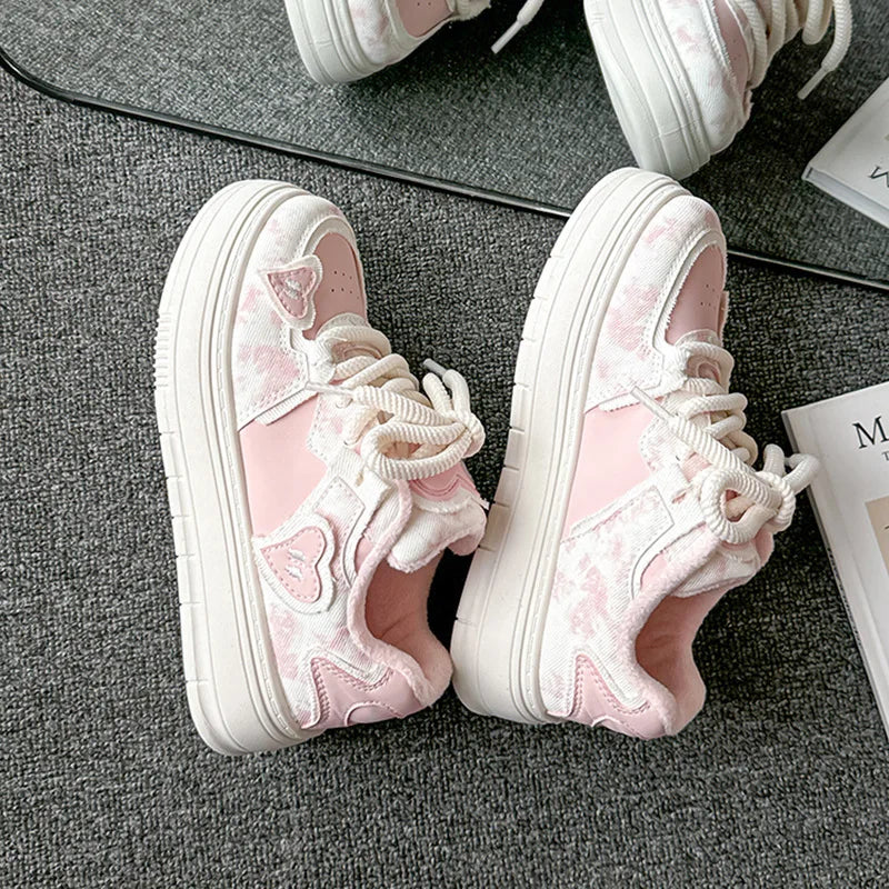 LIZAKOSHT - Winter Shoes Women Clogs Platform All-Match Round Toe Casual Female Sneakers Flats Creepers New Dress Sewing Leisure Solid Lace-