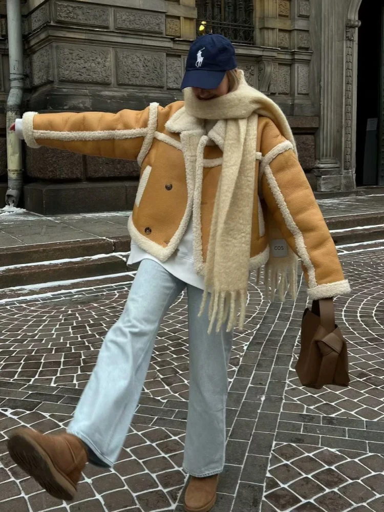 Lizakosht Winter Women Faux Fur Woolen Lapel Loose Jacket Women Thick Warm Long Sleeve Cotton Coat Ladies Elegant Jackets Streetwear