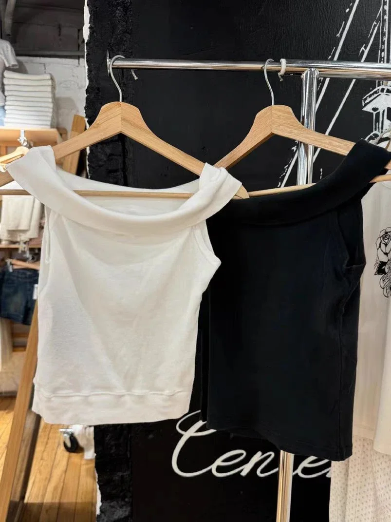 LIZAKOSHT - Woman Black Strapless Cropped T-shirts 2024 Summer Slash Neck Cotton Slim Tee Shirts Sweet Streetwear Preppy Style Crop Tops Y2k