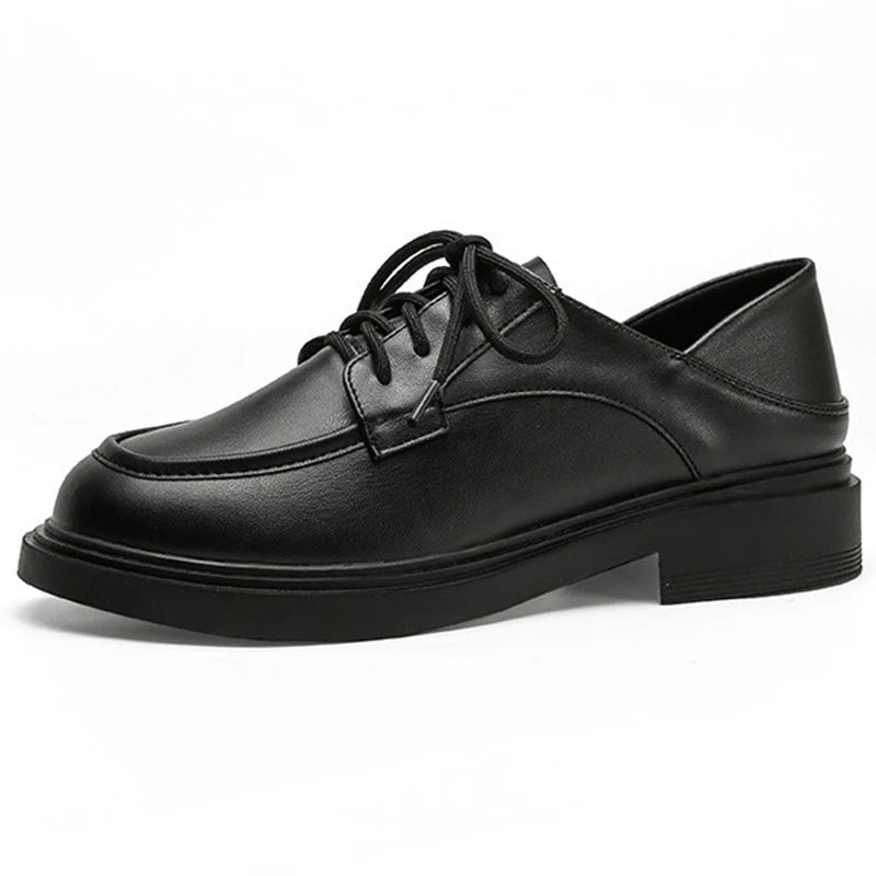 LIZAKOSHT - Women 3.5cm High Heels Classic Daily Leather Pumps Female Round Toe Lace Up Block Heels Lady Elegant Retro British Style Loafers