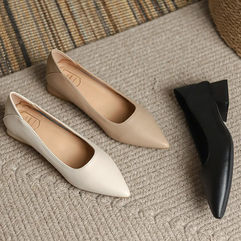 LIZAKOSHT - Women 3cm High Heels Versatile Comfortable Office Pointed Toe Shoes Lady Soft Leather Classic Shallow Outside Daily Pumps