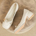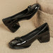 LIZAKOSHT - Women 5cm High Heels Sweet Valentine Pumps Female Versatile Metal Heart Buckle Square Heels Lady Elegant Patent Leather Shoes