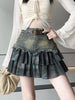 LIZAKOSHT - Women Blue A-line Denim Skirt Vintage Aesthetic Y2k Mini Jean Skirt Harajuku Korean Streetwear Cowboy Skirt 2000s Clothes Summer