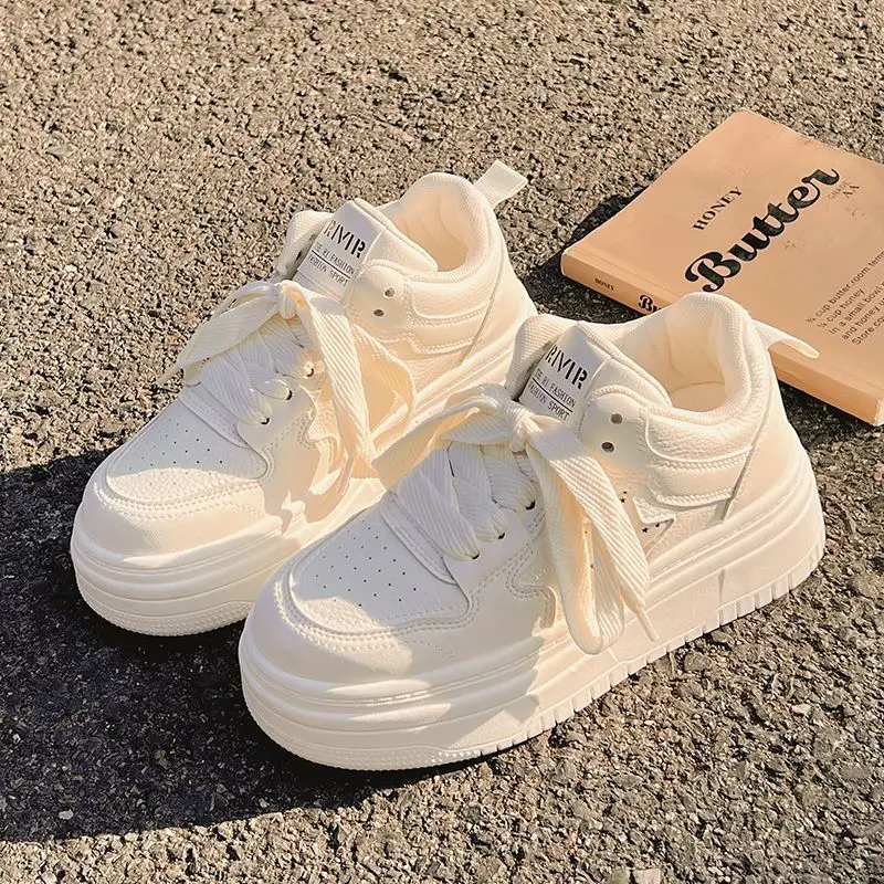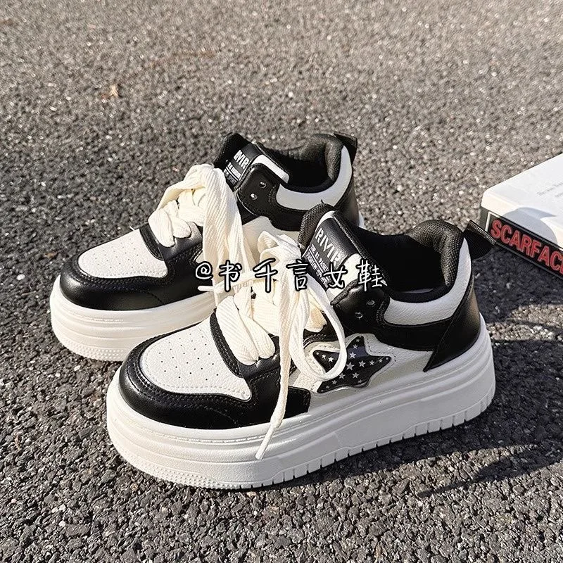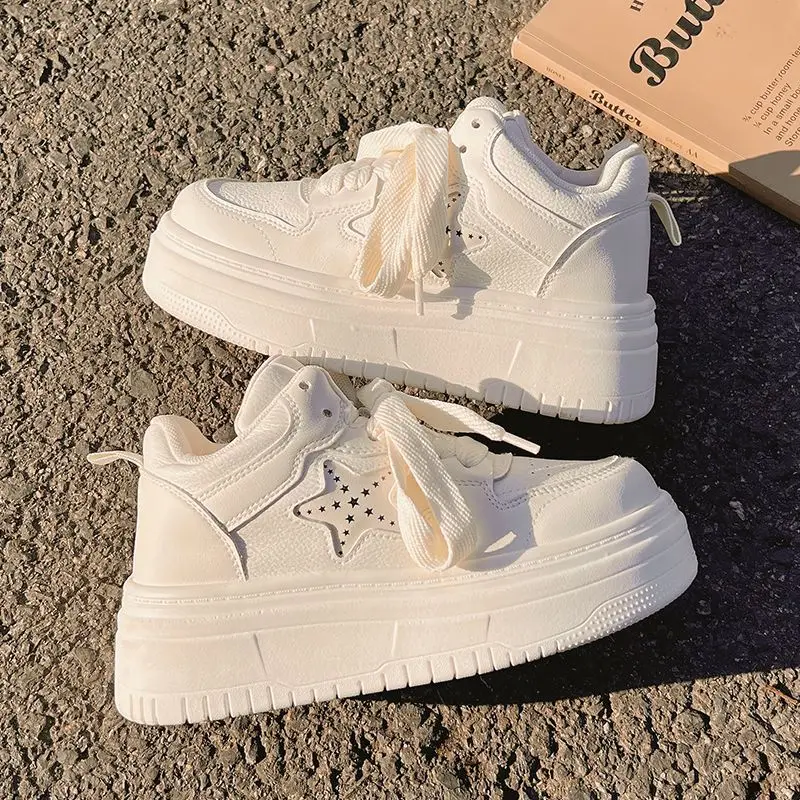 LIZAKOSHT Women Breathable Retro Sneakers Casual Star White Shoes Thick Heel Heart Sneakers Casual Running Platform Y2K Lovely Bread Shoes