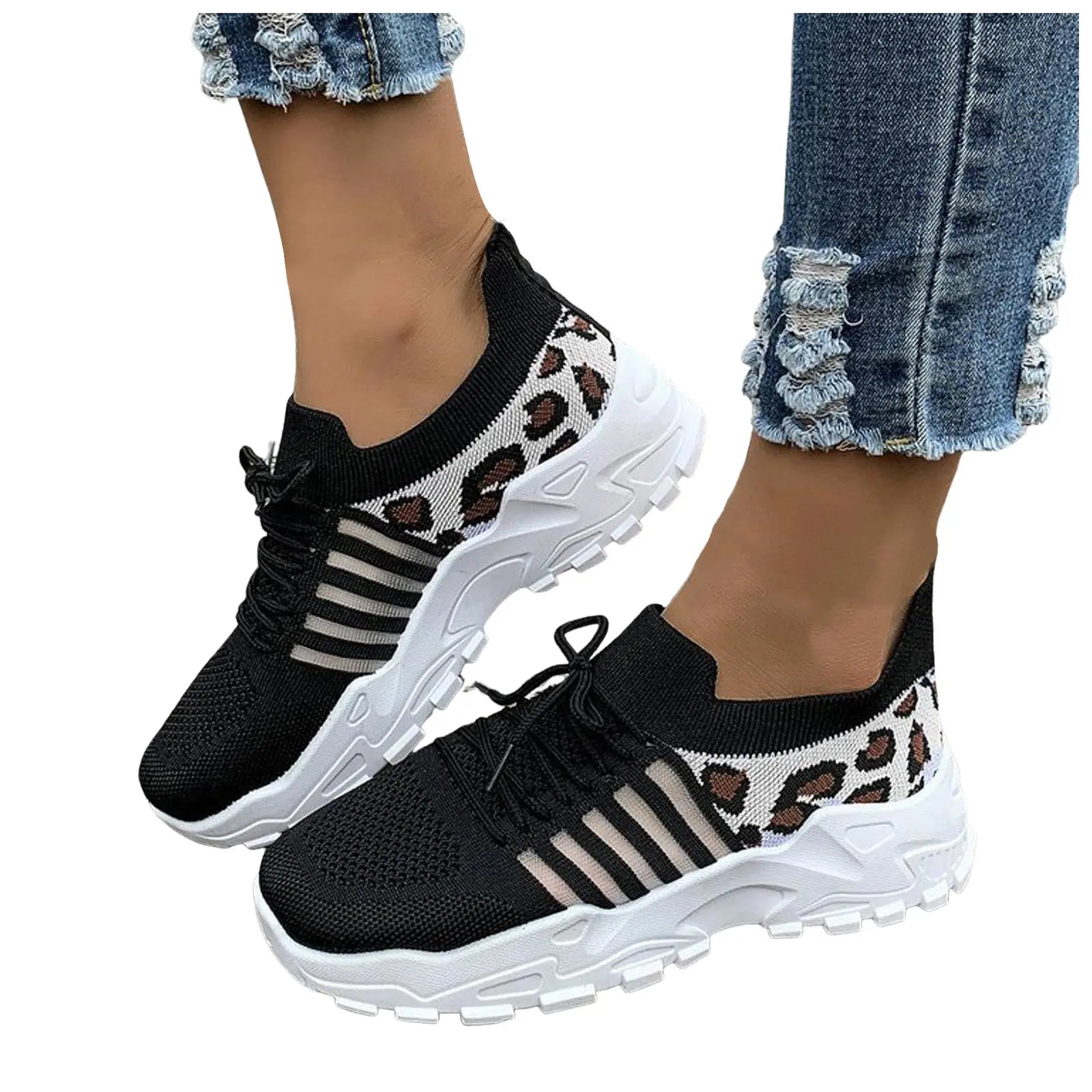 LIZAKOSHT - Women Casual Shoes Breathable Walking Mesh Flat Shoes Platform Sneakers Women Vulcanized Shoes Leopard Female Footwear Summer