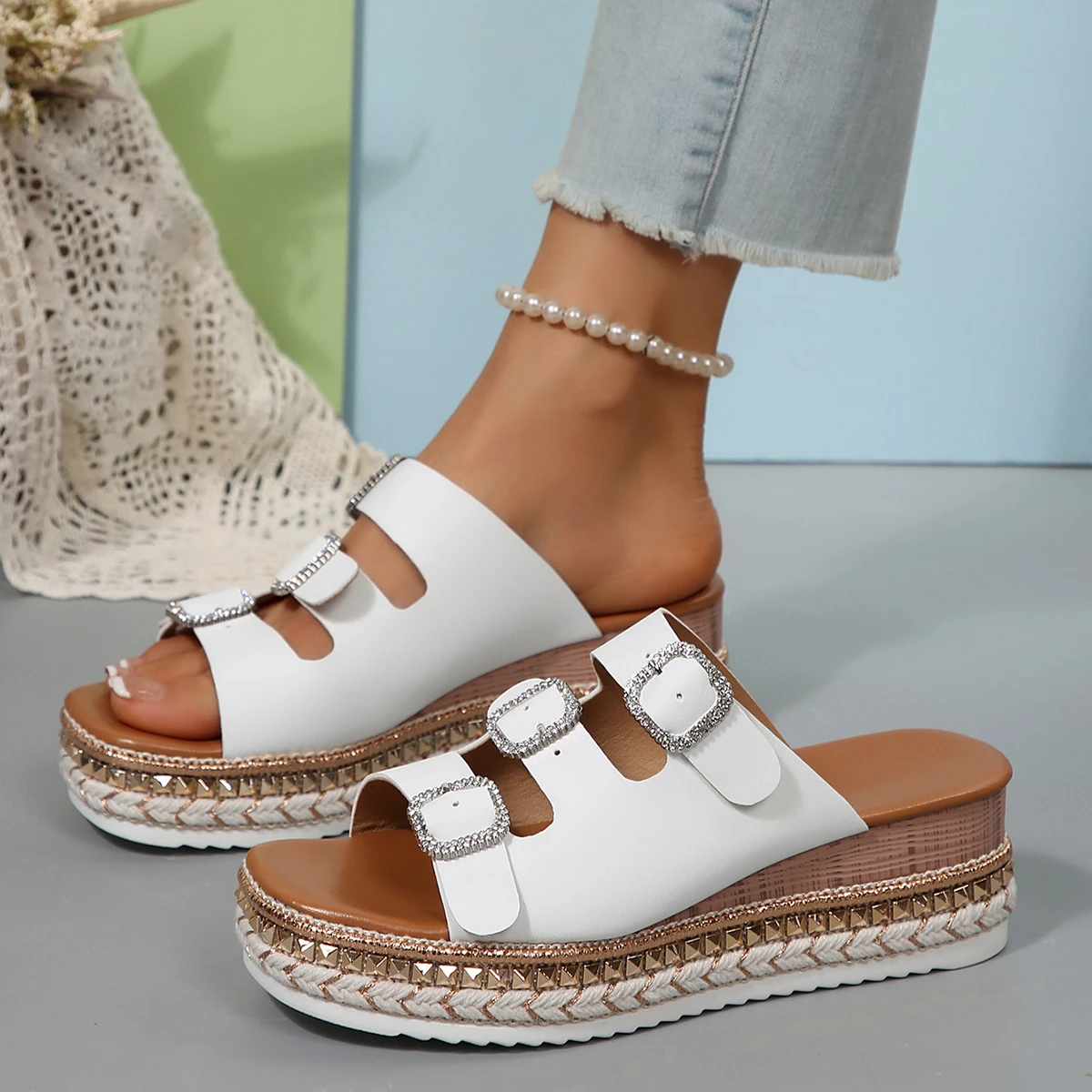 LIZAKOSHT - Women Closed Toe Summer Shoes New Comfort Double Buckle Wedge Ladies Sandals Plus Size Platform Casual Slippers Women