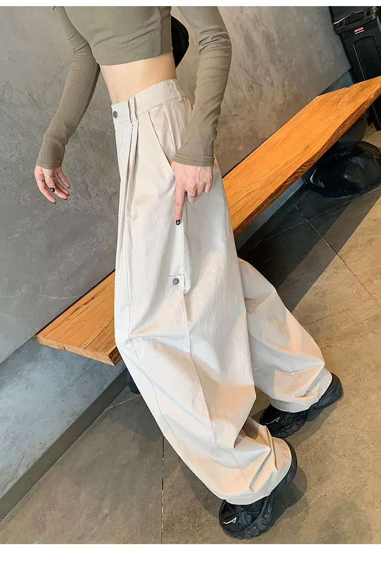 LIZAKOSHT  -  Women Clothing Vintage Streetwear Y2K Oversized Wide Leg Cargo Pants Female Casual Solid High Waist Straight Trousers Pantalones