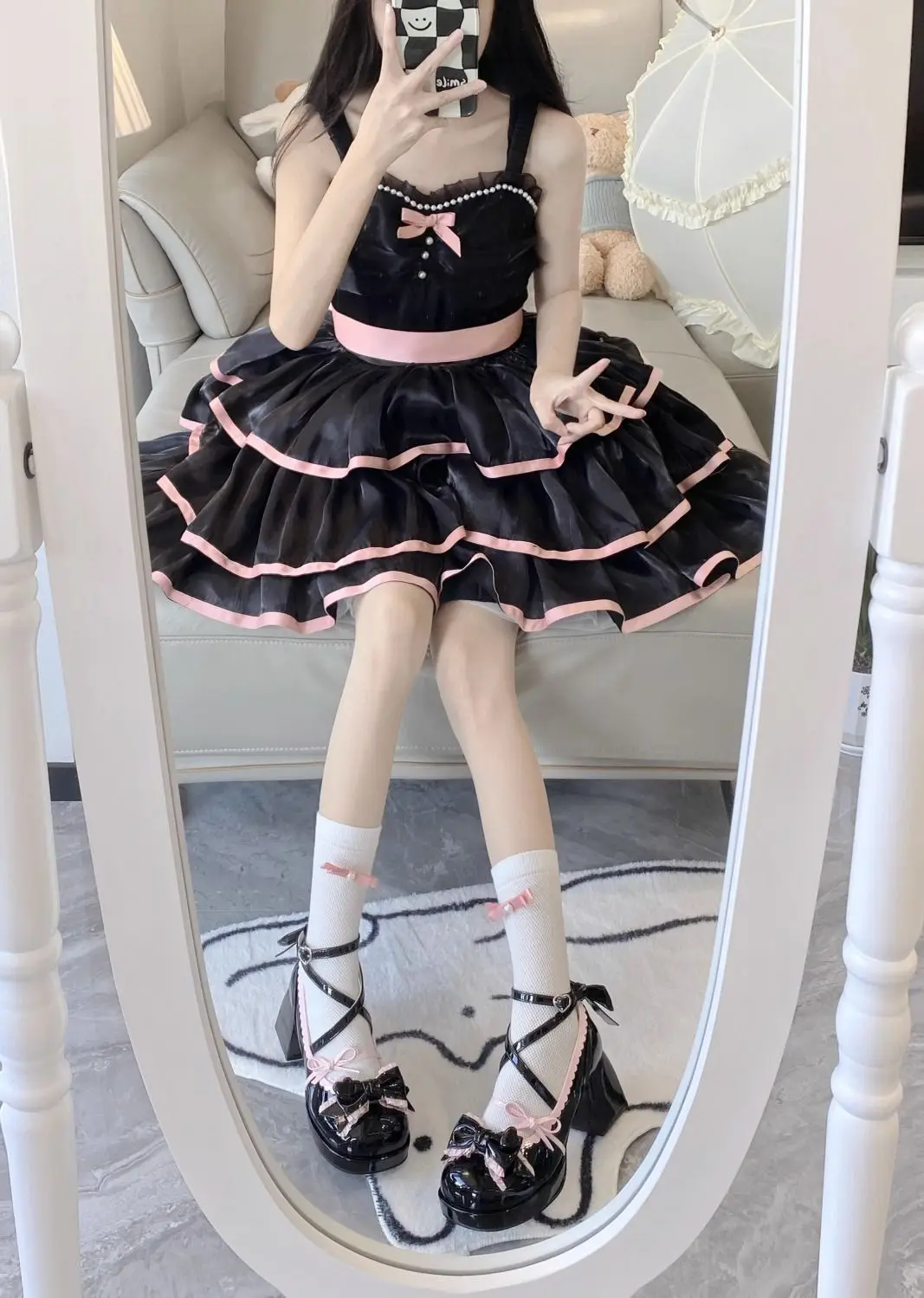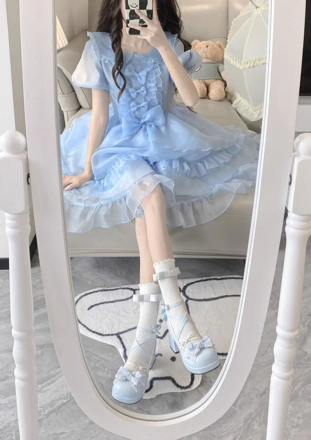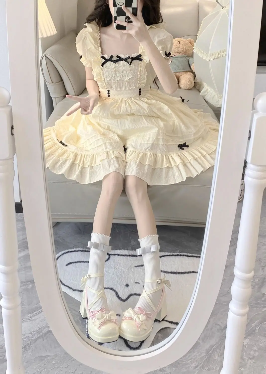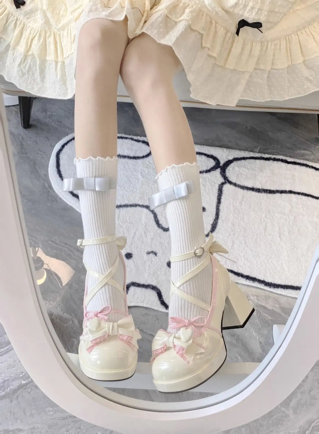 LIZAKOSHT - Women Cute Square Heel Platform Pumps Japanese Bow Sweet Lolita Shoes Female Pu Leather Mary Janes Shoes