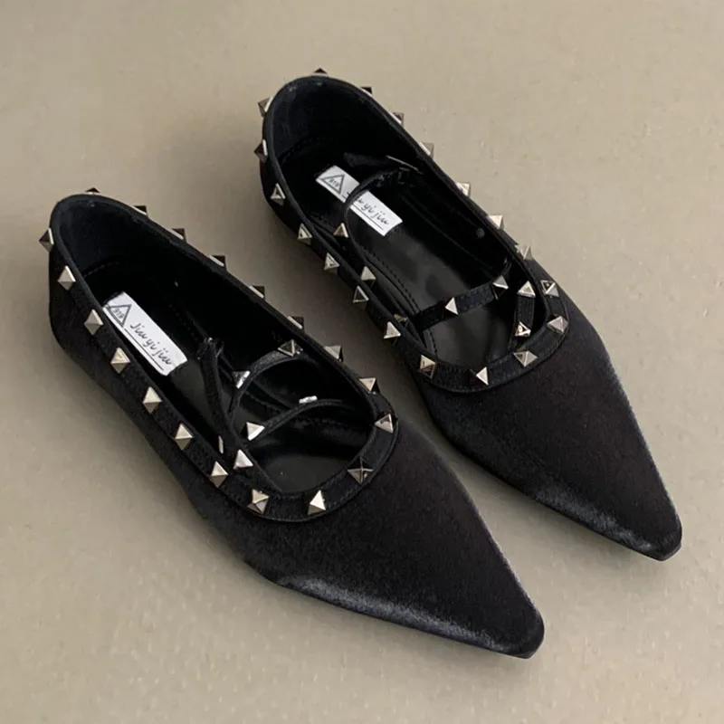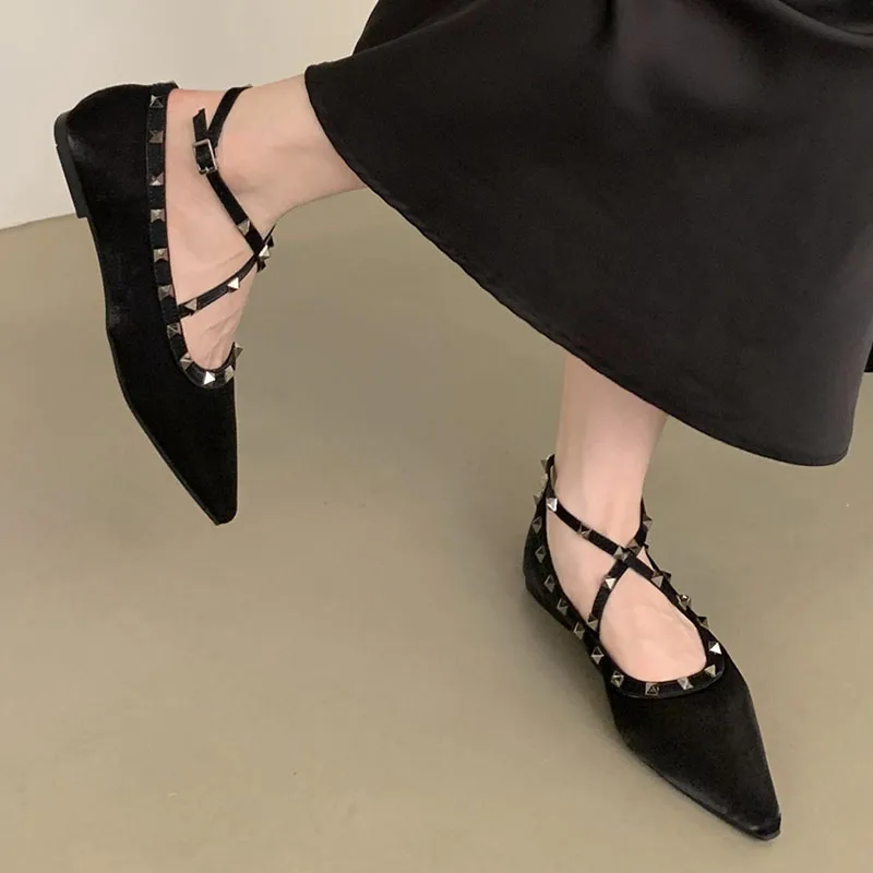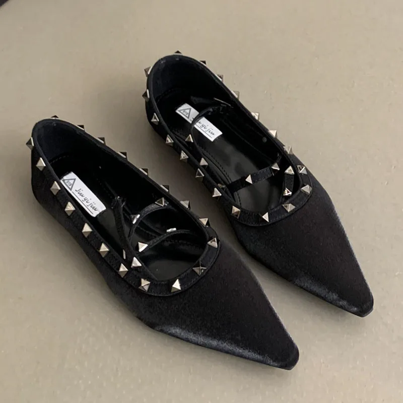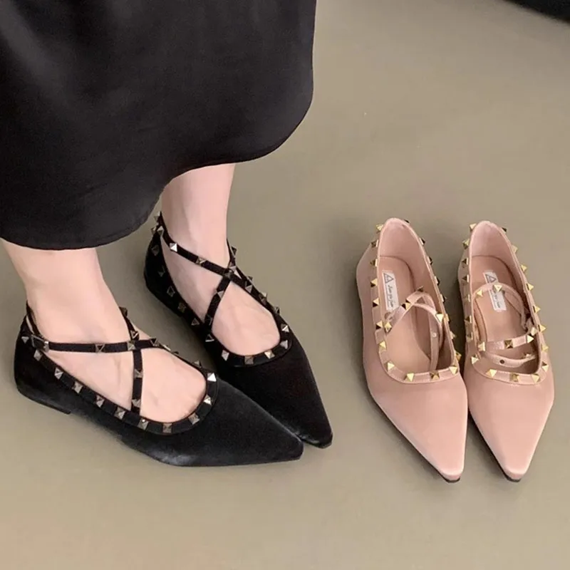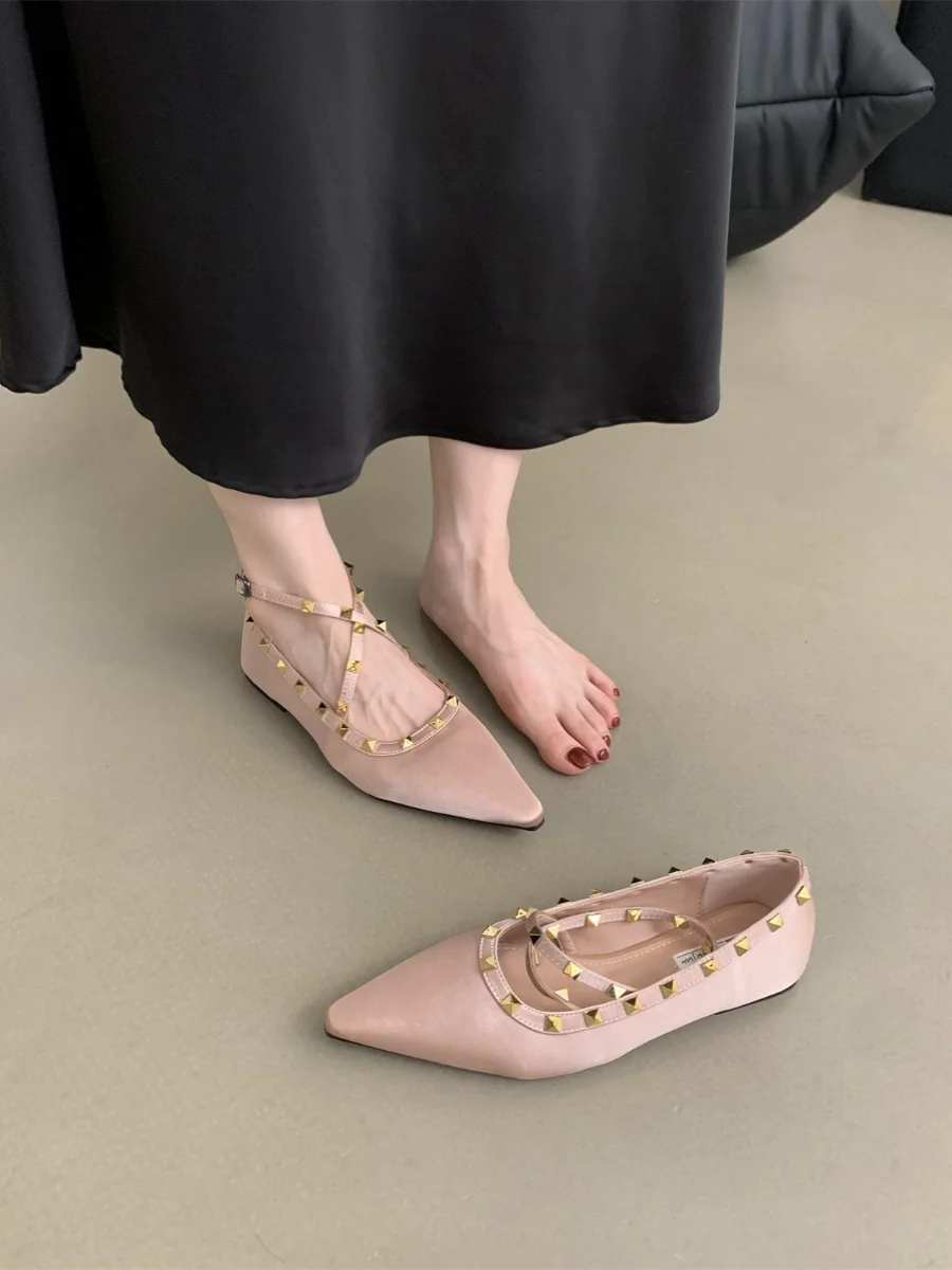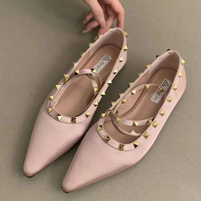 LIZAKOSHT - Women Flats Shoes 2024 Designer Luxury Rivet Fashion Ladies Flat Ballet Shoes Slingbacks Pointed Toe Casual Female Loafers Mujer