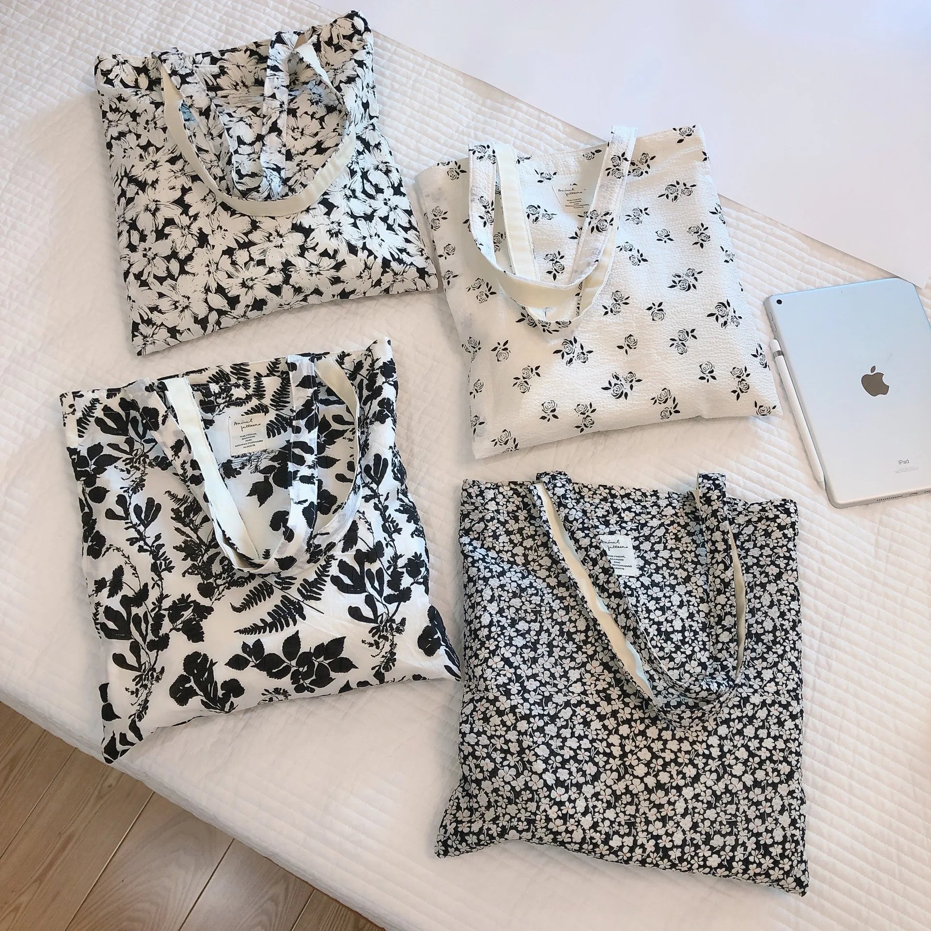 LIZAKOSHT - Women Flower Single Shoulder Bag Tote Cotton Cloth Bag Environmental Protection Top-handle Bags Female Daily Handbag