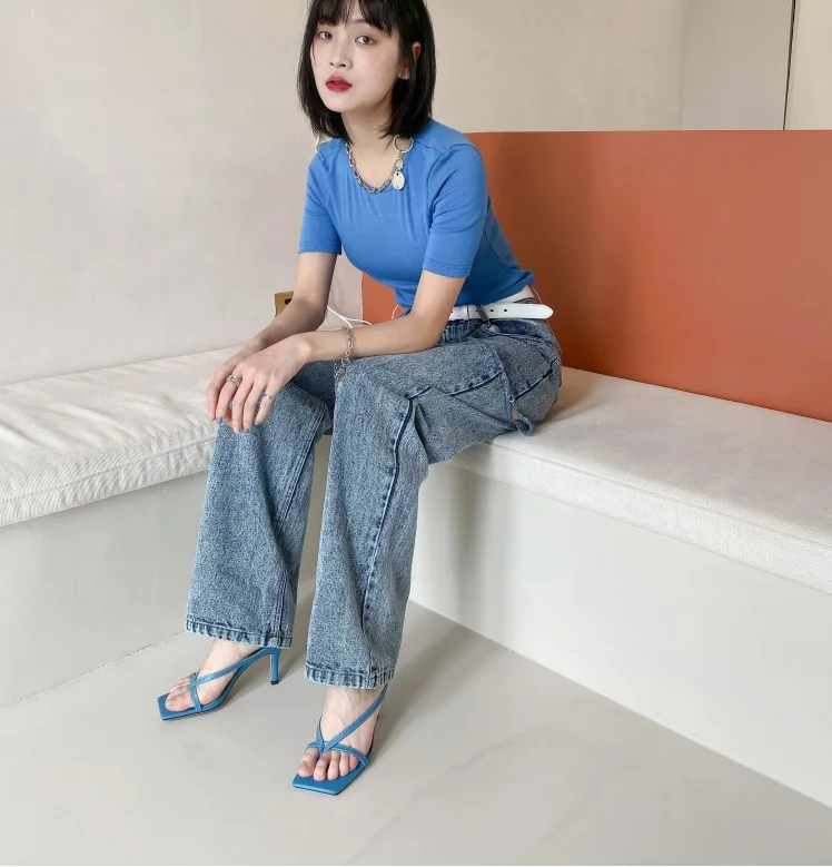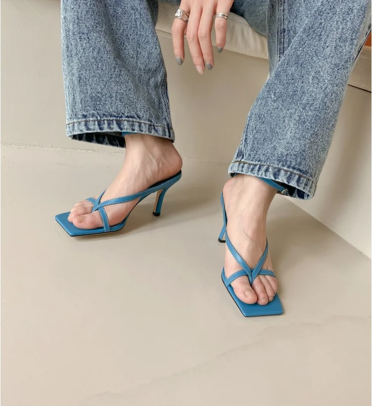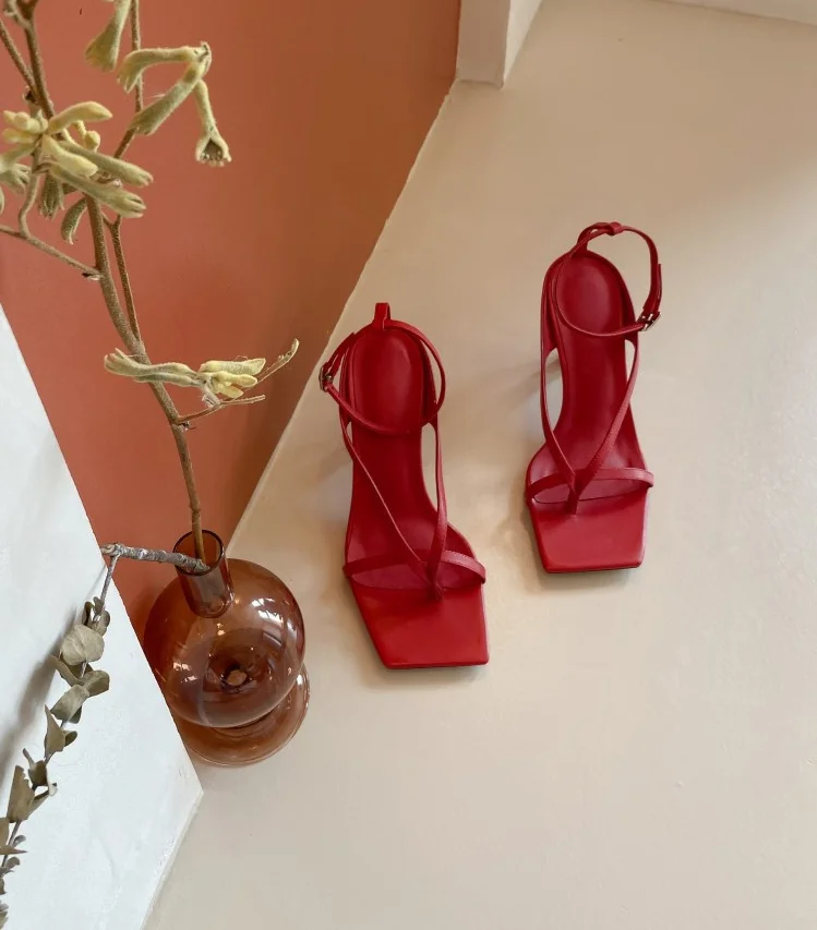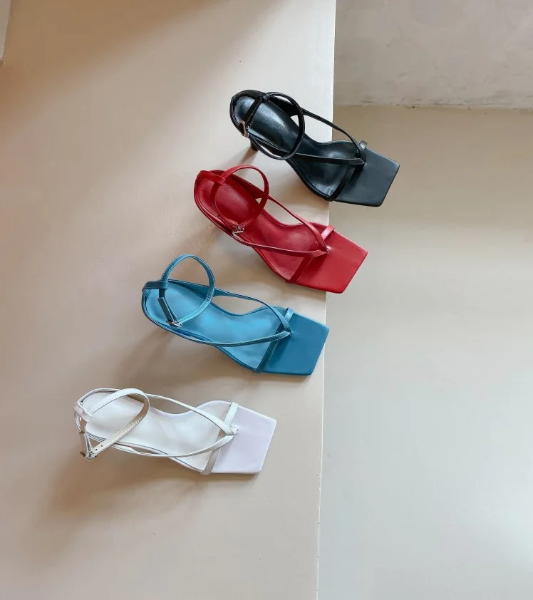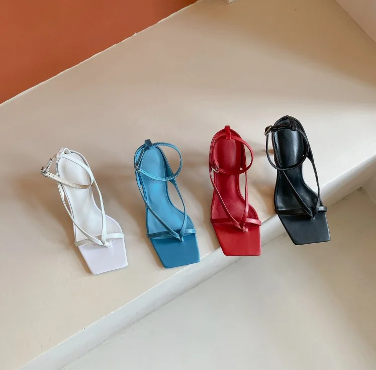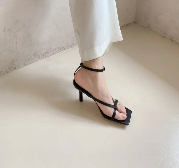 LIZAKOSHT - Women Genuine Leather Sandals Thin Heel Sandals High Heels Buckle Square Toe Ladies Footwear Summer Beige Black Red 39