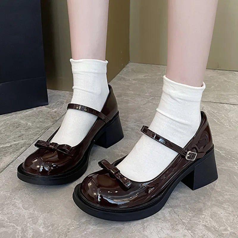 LIZAKOSHT Women High Heels Sandals Summer New Bow Marie Jane Lolita Shoes Chunky Brand Pumps Fad Dress Shallow Women Shoes