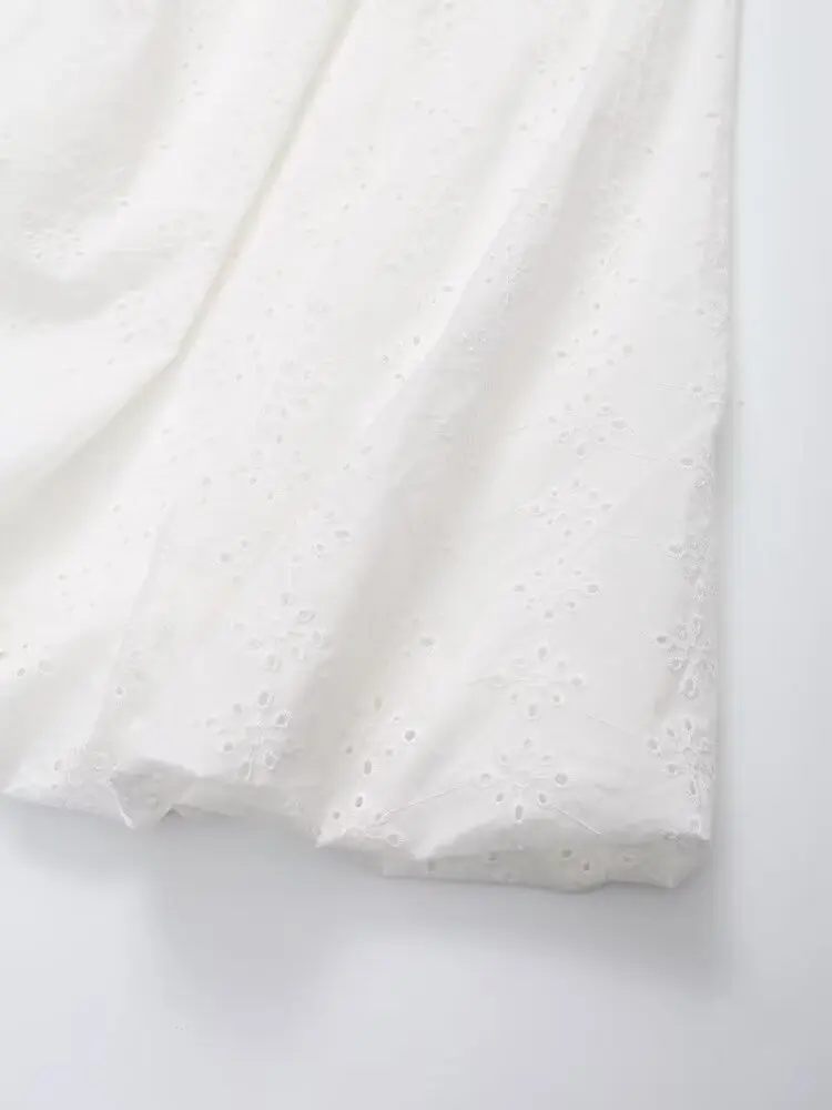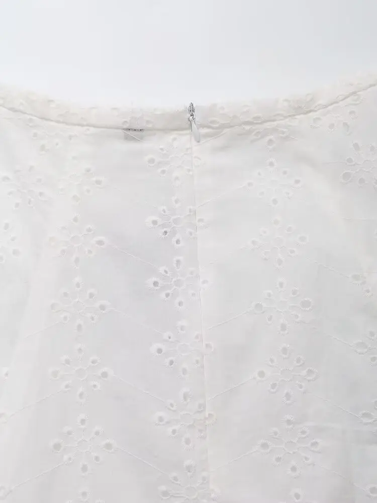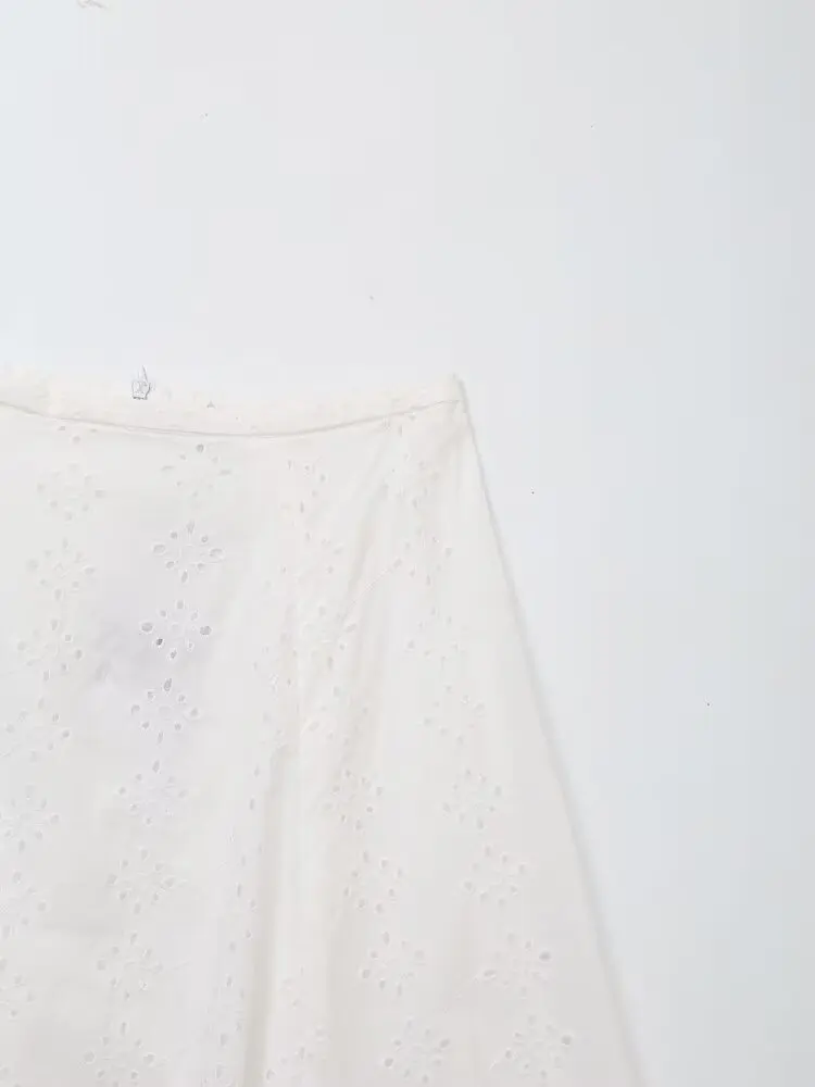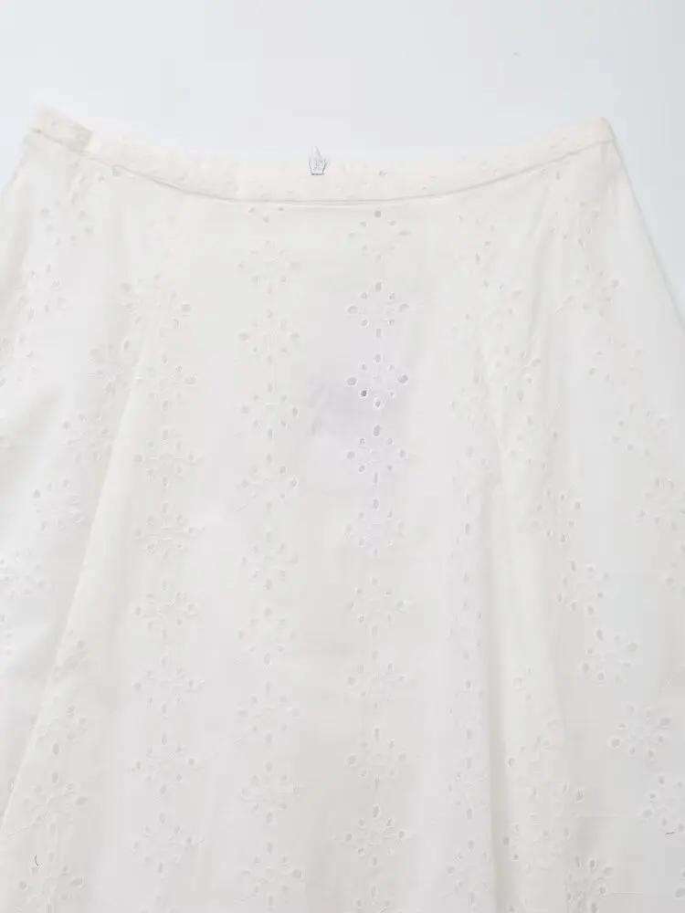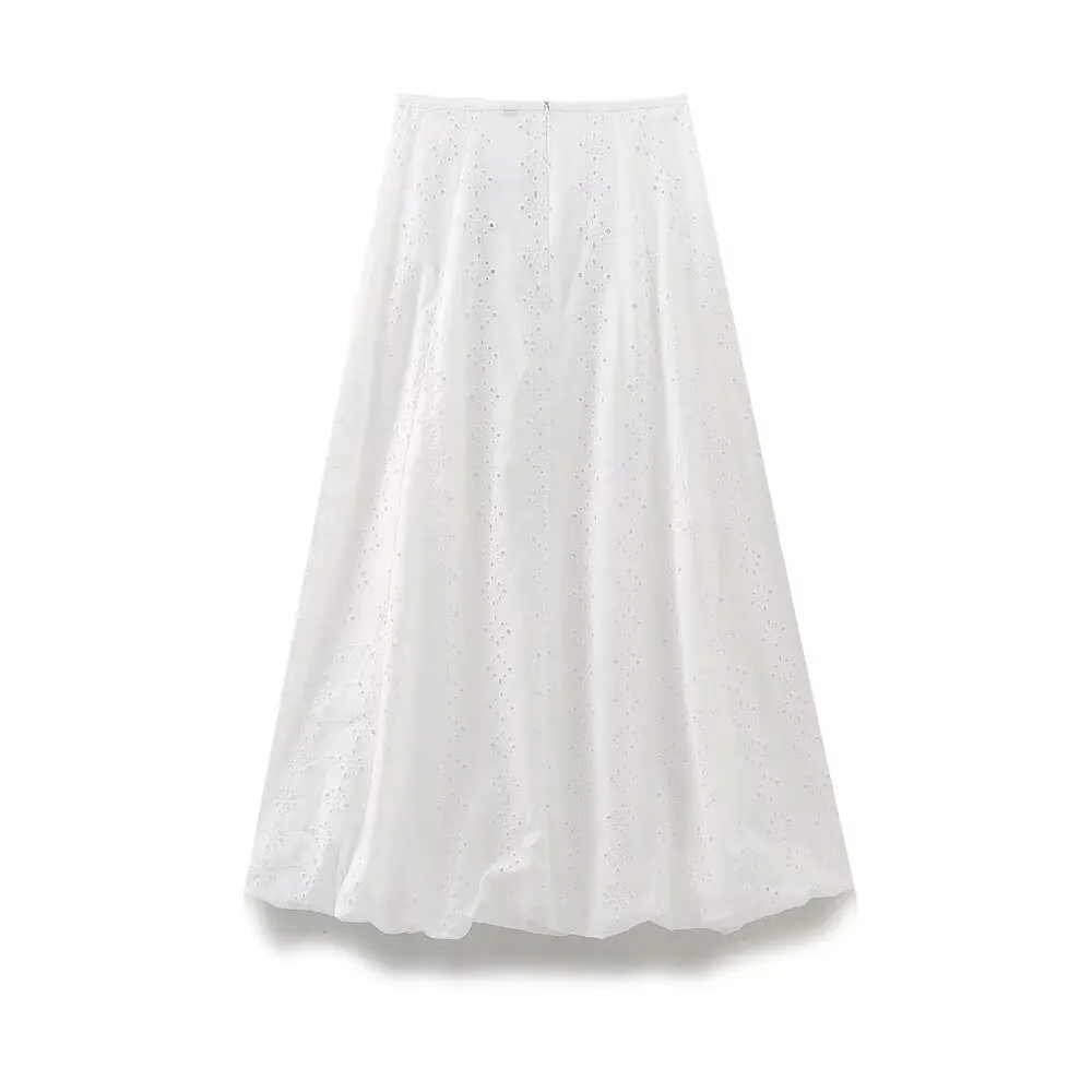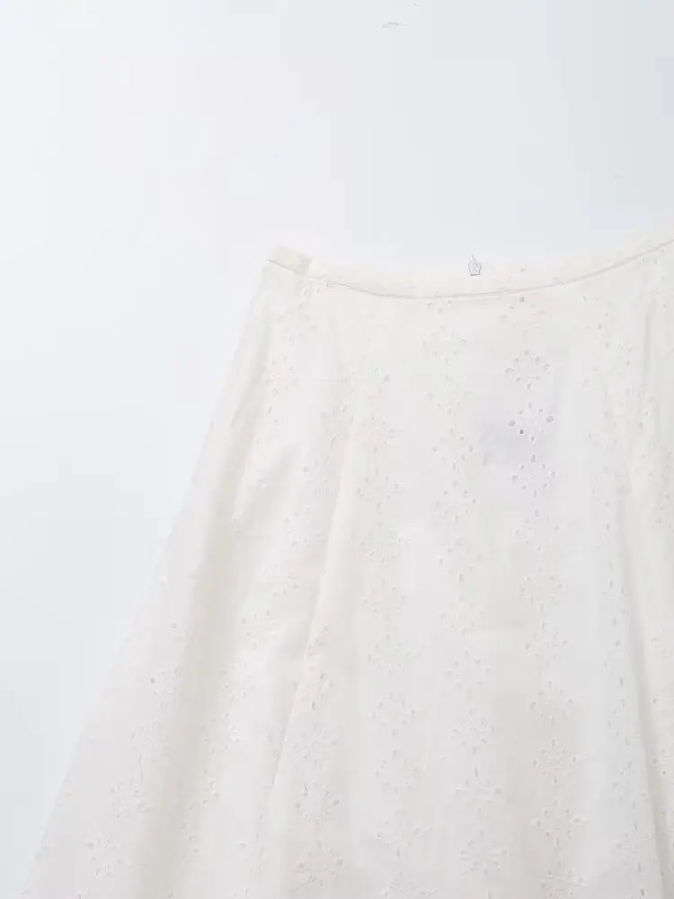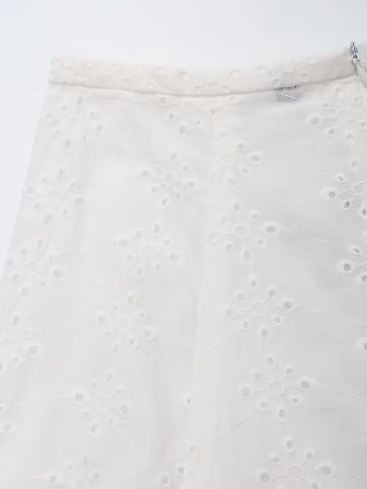 LIZAKOSHT - Women Hollow Out Embroidery White Skirt Summer Female Mid-rise Back Zipper A-line Midi Skirts