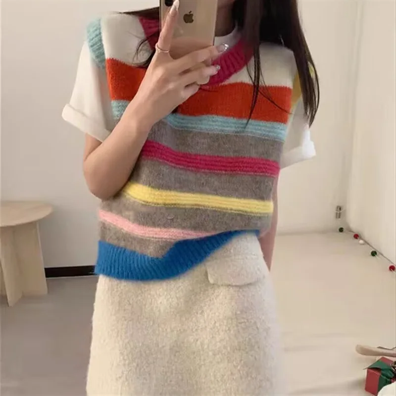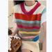 LIZAKOSHT - Women Knit Sweater Vests 2025 New Colorful Stripes Sleeveless O-neck Tops Knitwear Fashion Loose Casual Ladies Chic Jumpers