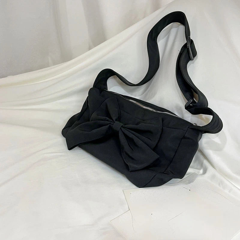LIZAKOSHT  -  Women New Students All Match Crossbody Bags Y2k Aesthetic Trendy Simple Bow Canvas Bag 2024 Preppy Sweet Shoulder
