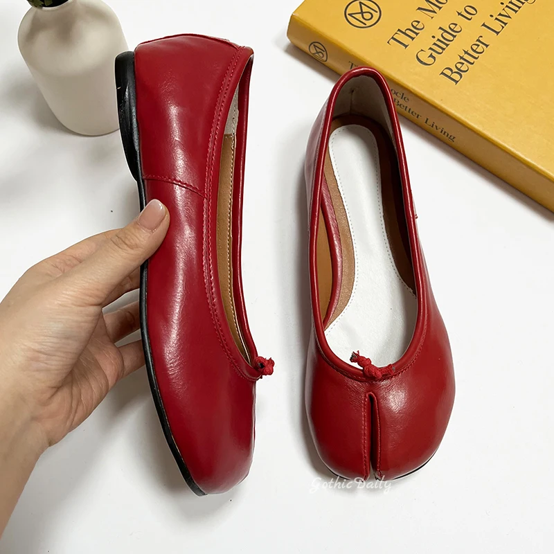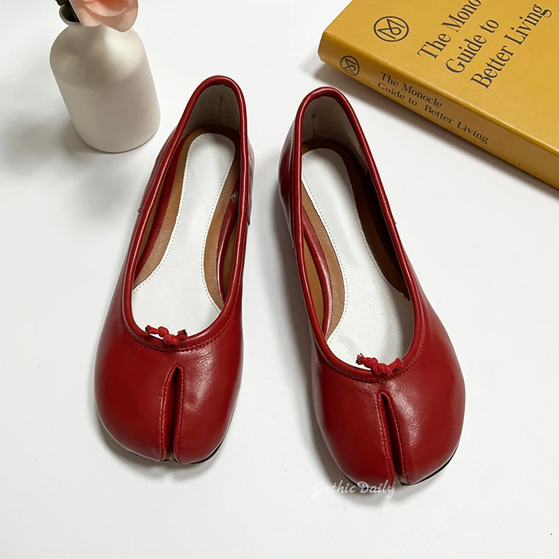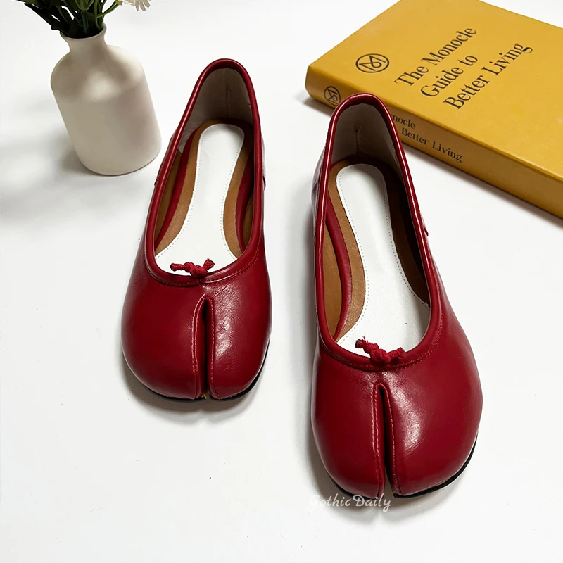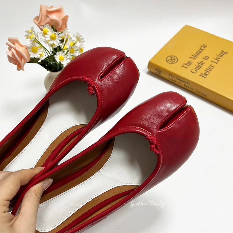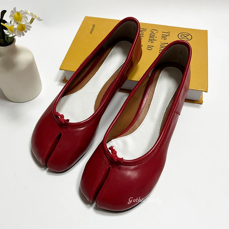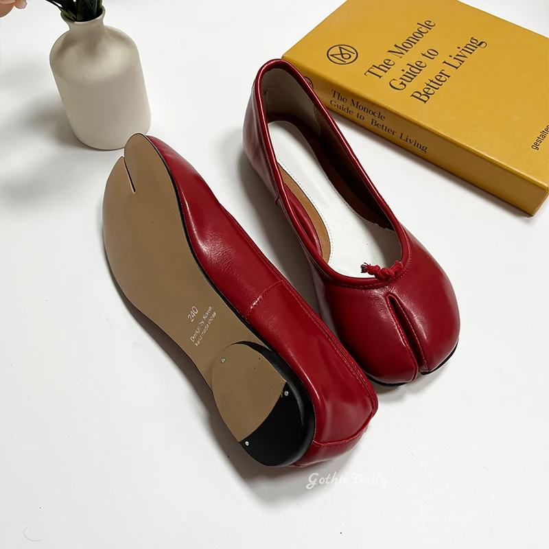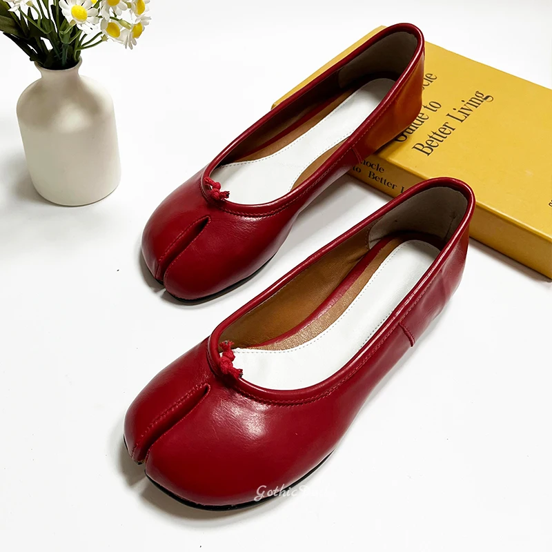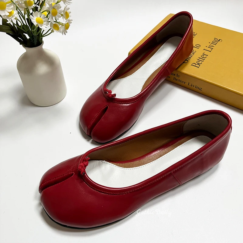 LIZAKOSHT - Women Red Ballets Shoes Split Toe Flat Ballerines Mary Janes Plus Size 44 Lolita Dress Ballerina Zapato Muje