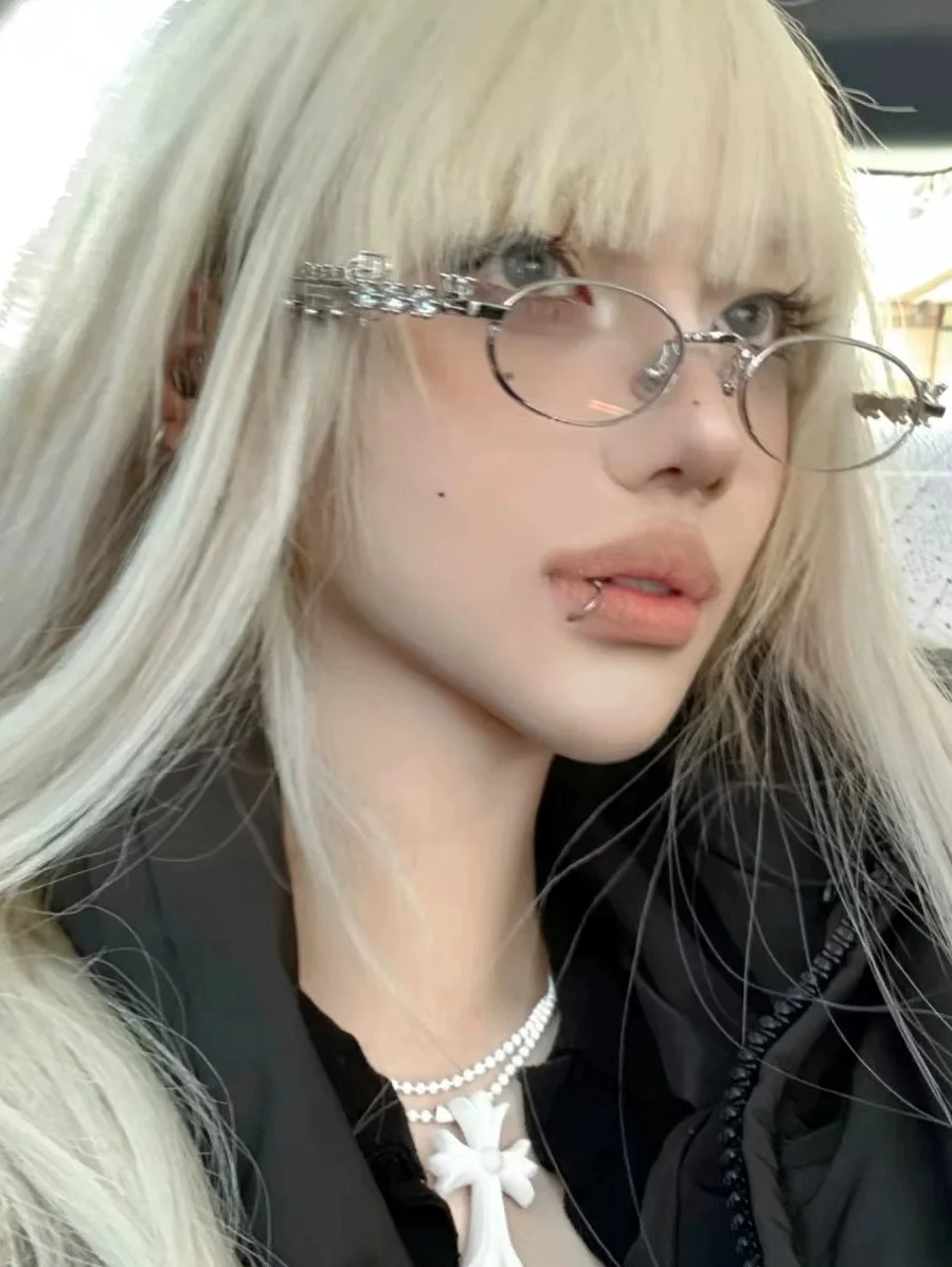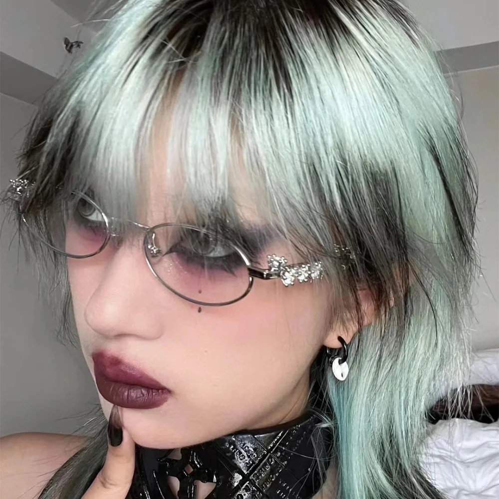 LIZAKOSHT - Women Retro Rhinestone Eyeglasses Girls Small Oval Shades Eyewear Metal Frames Anti Blue Light Reading Glasses Eyewears