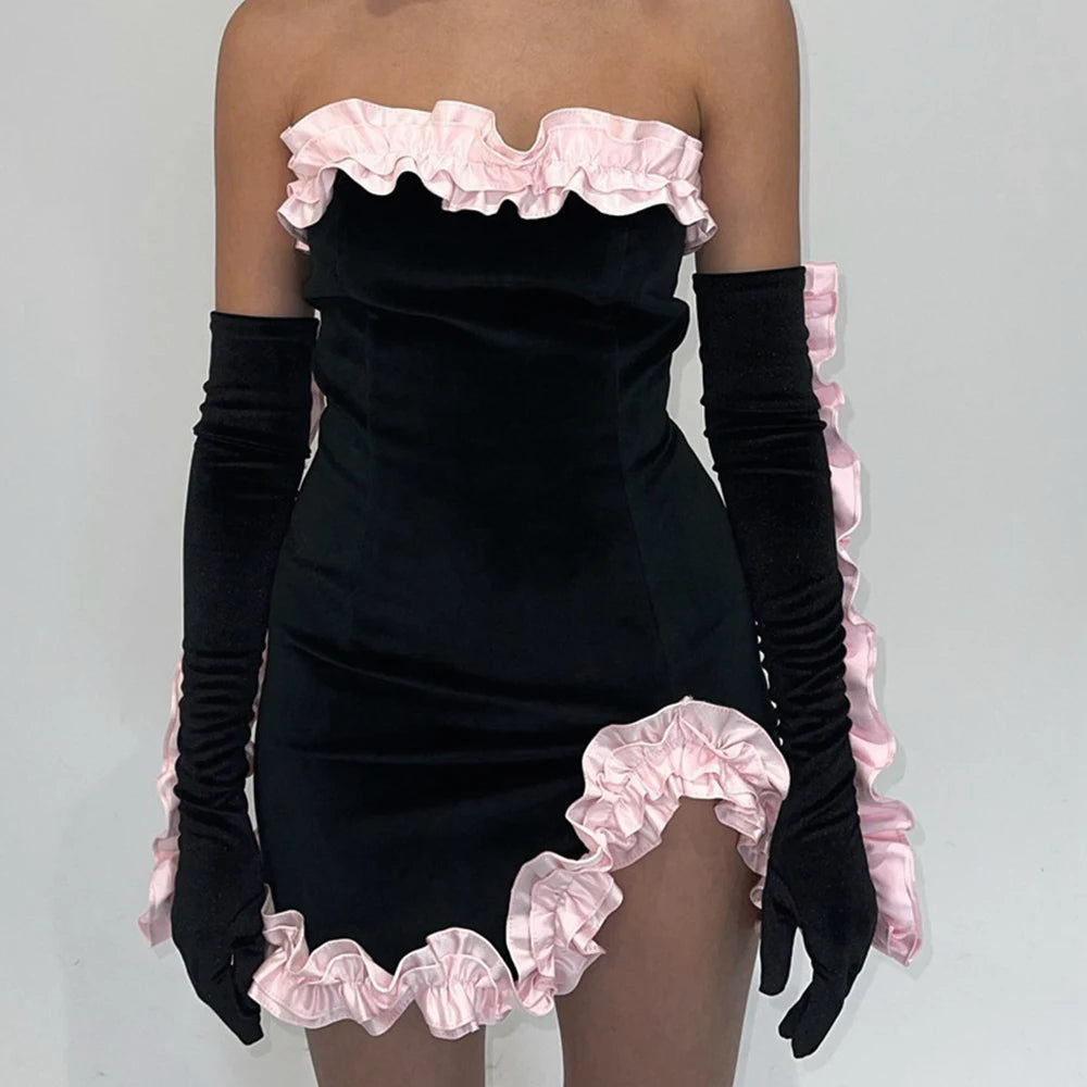 LIZAKOSHT - Women Ruffle Party Club Slight Strech Dress Ladies Summer Sexy Boob Tube Sleeveless Attractive Mini Dress For Free Shipping