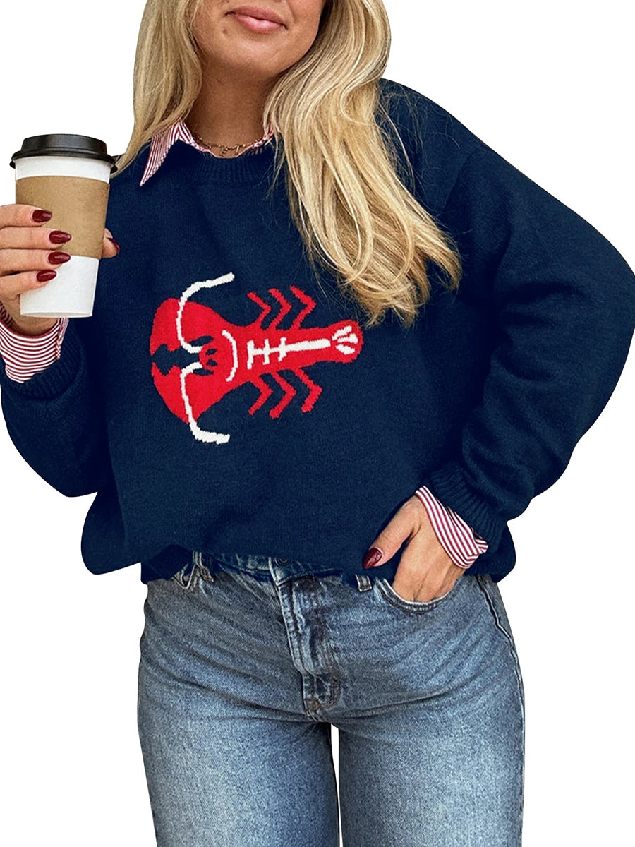 LIZAKOSHT - Women s Crab Sweater Crew Neck Long Sleeve Pullover Knit Tops Casual Streetwear for Autumn Winter Season