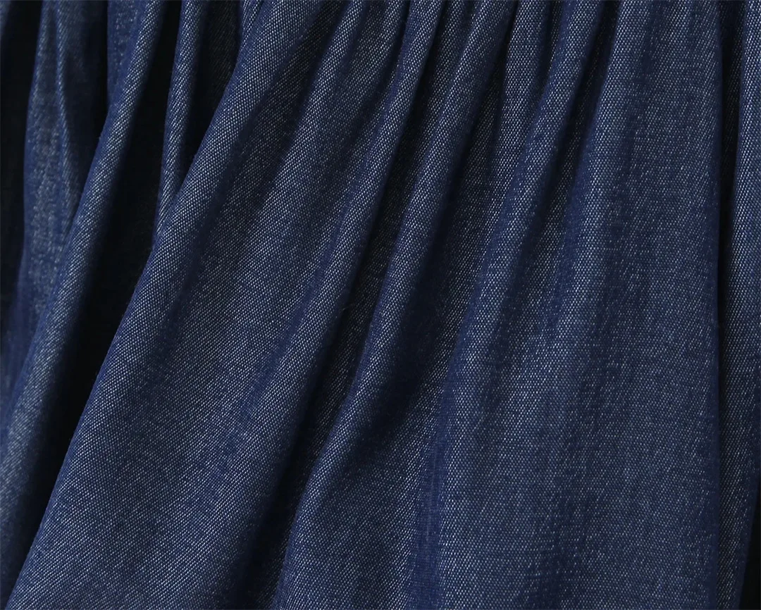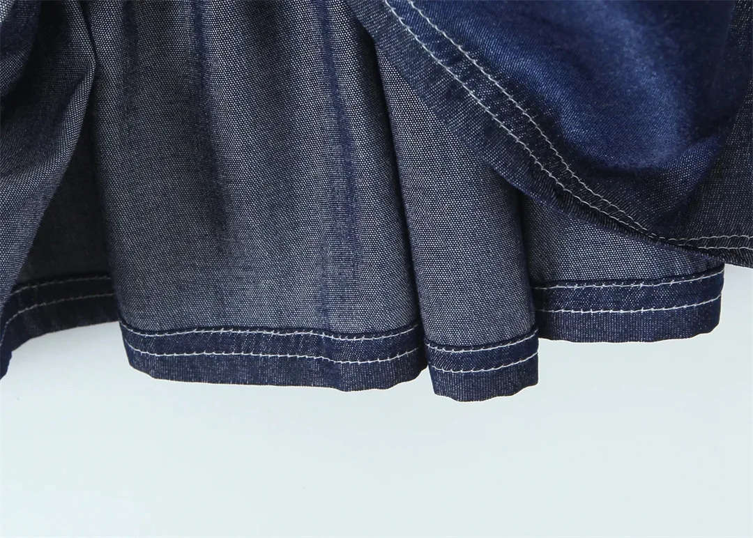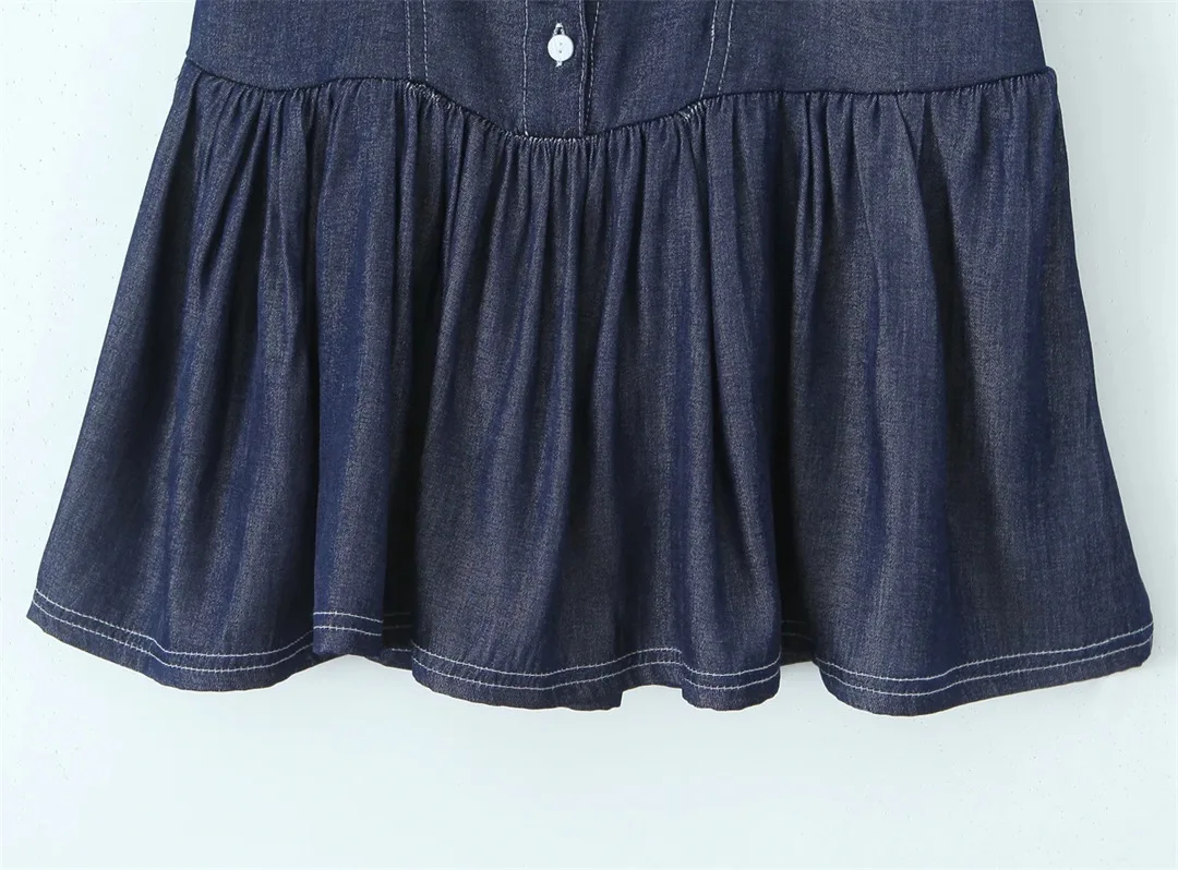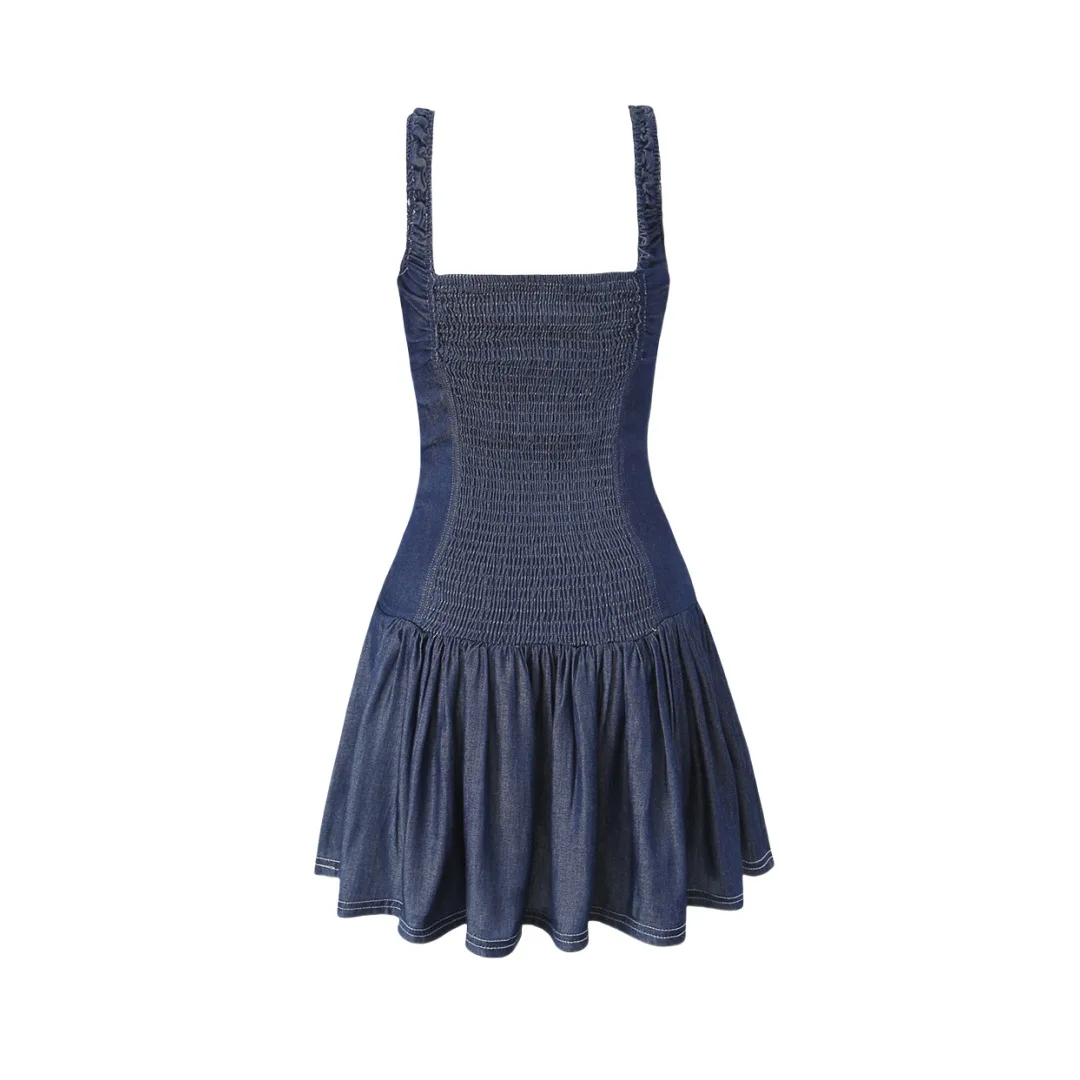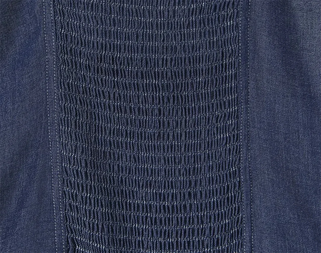 LIZAKOSHT - Women Smocked back Button Christa Denim Mini Dress Blue Denim