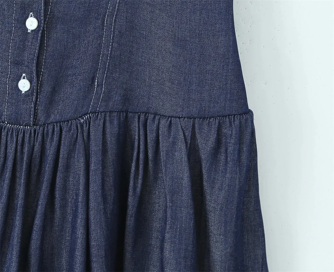 LIZAKOSHT  -  Women Smocked back  Button Christa Denim Mini Dress Blue Denim