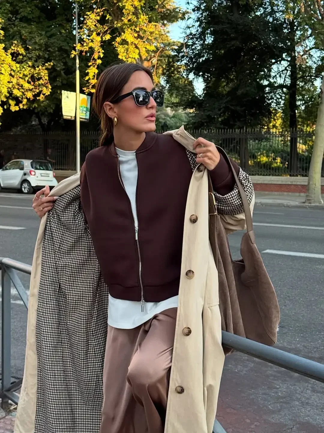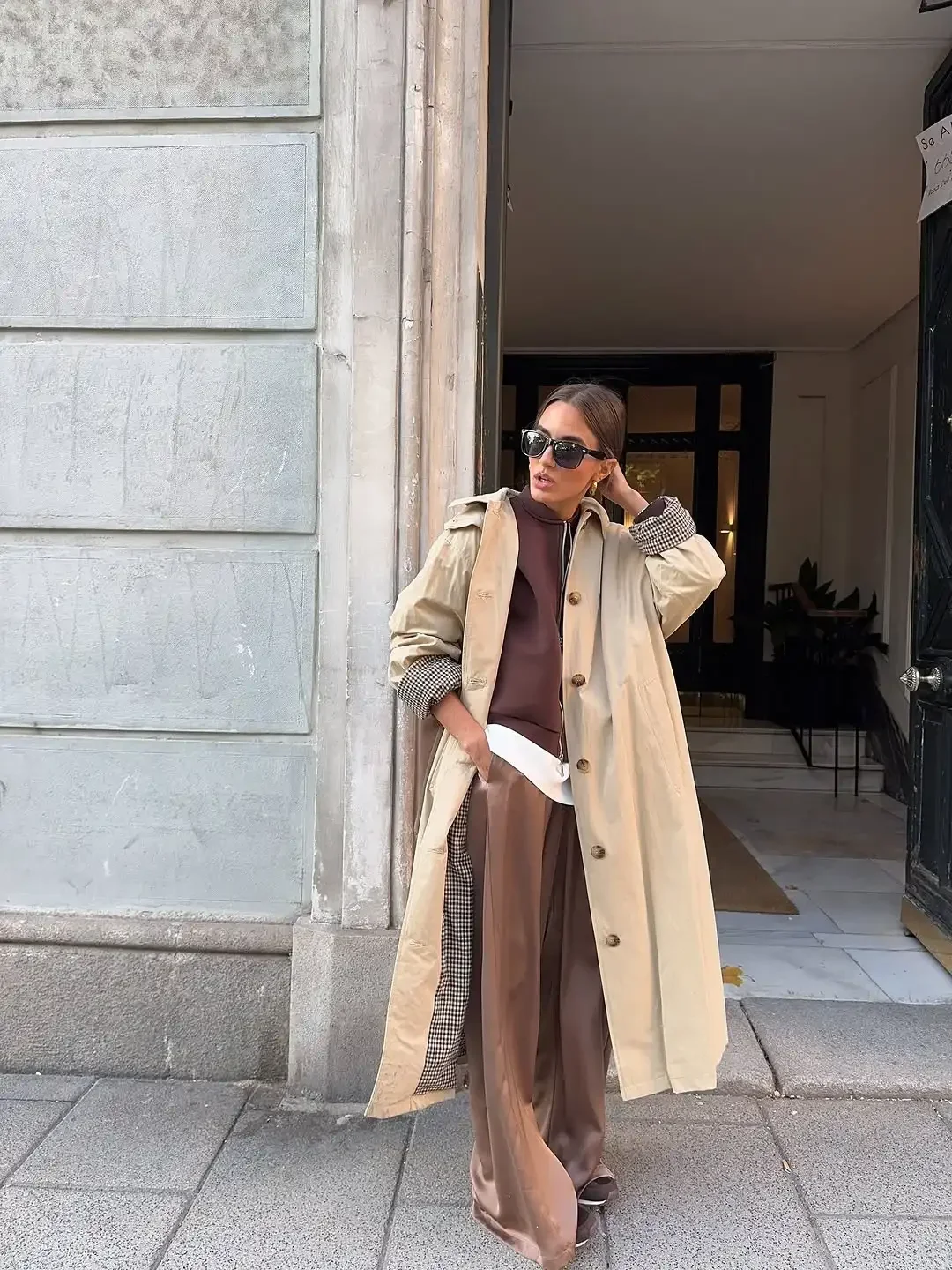 LIZAKOSHT  -  Women Solid Lapel Trench Coat Plaid Lining Single Breasted Full Sleeve Loose Coats Lady 2025 Autum Commute High Street Outwear