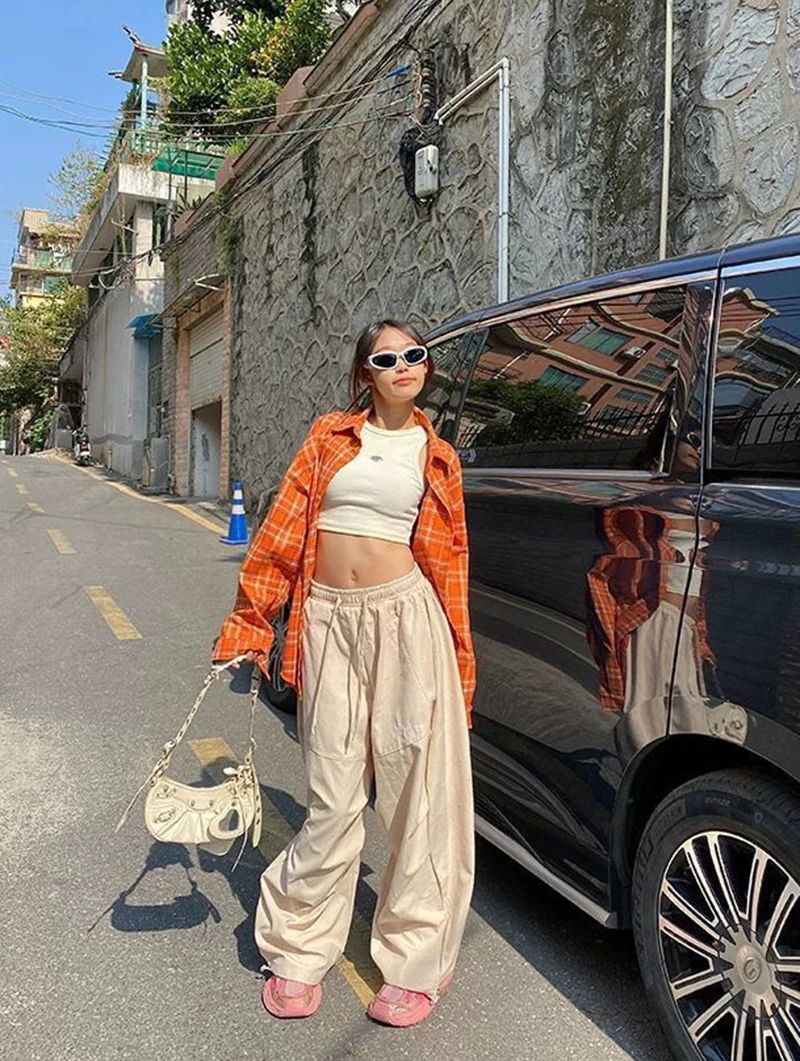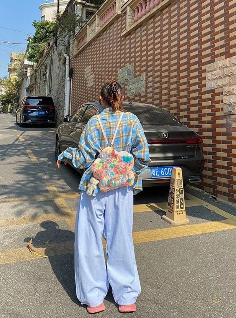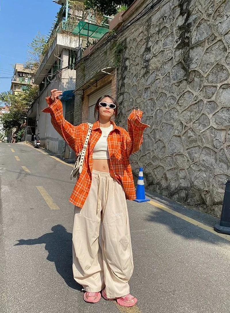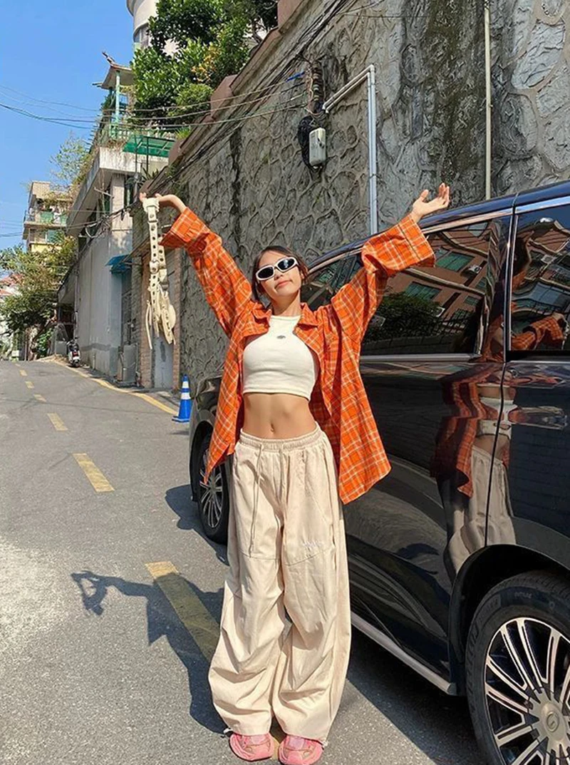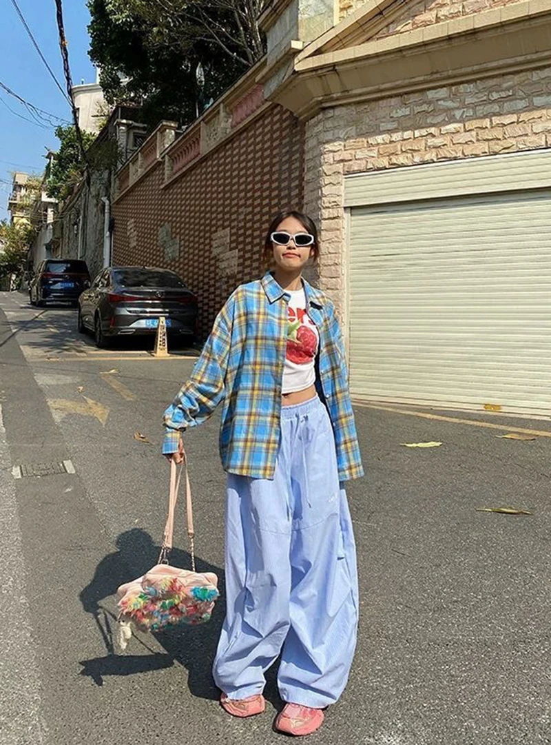 LIZAKOSHT - Women Striped Jazz Dance Pants Blue Loose Casual Lazy Wide Leg Pants Harajuku Y2K Summer American Streetwear Cargo Pants