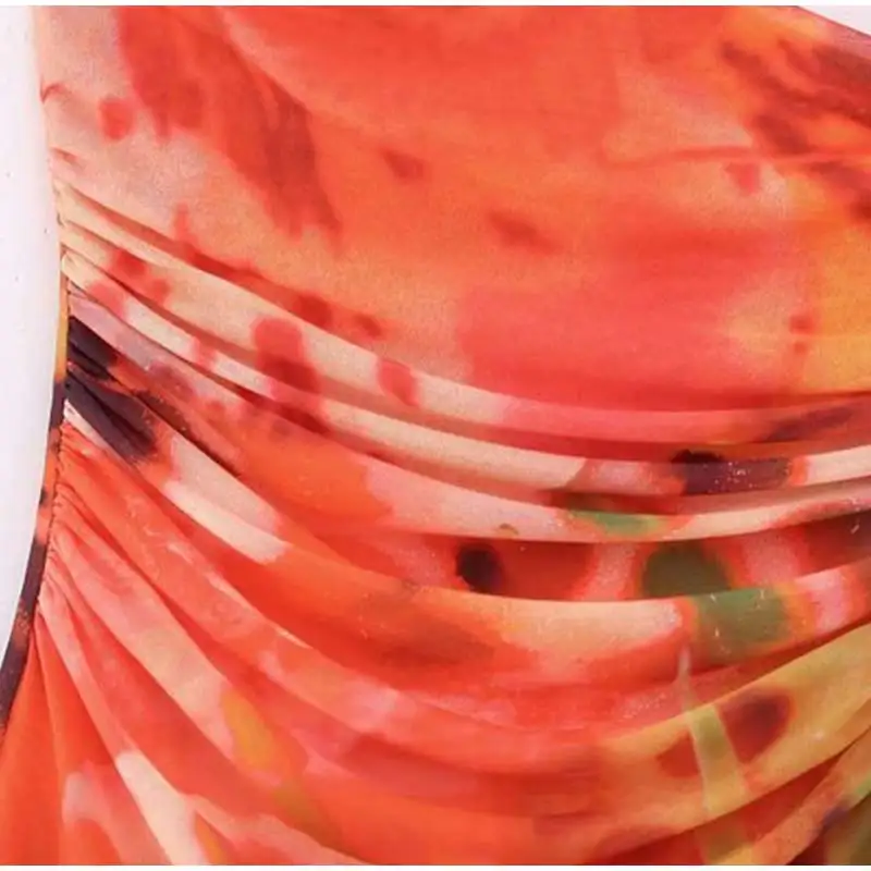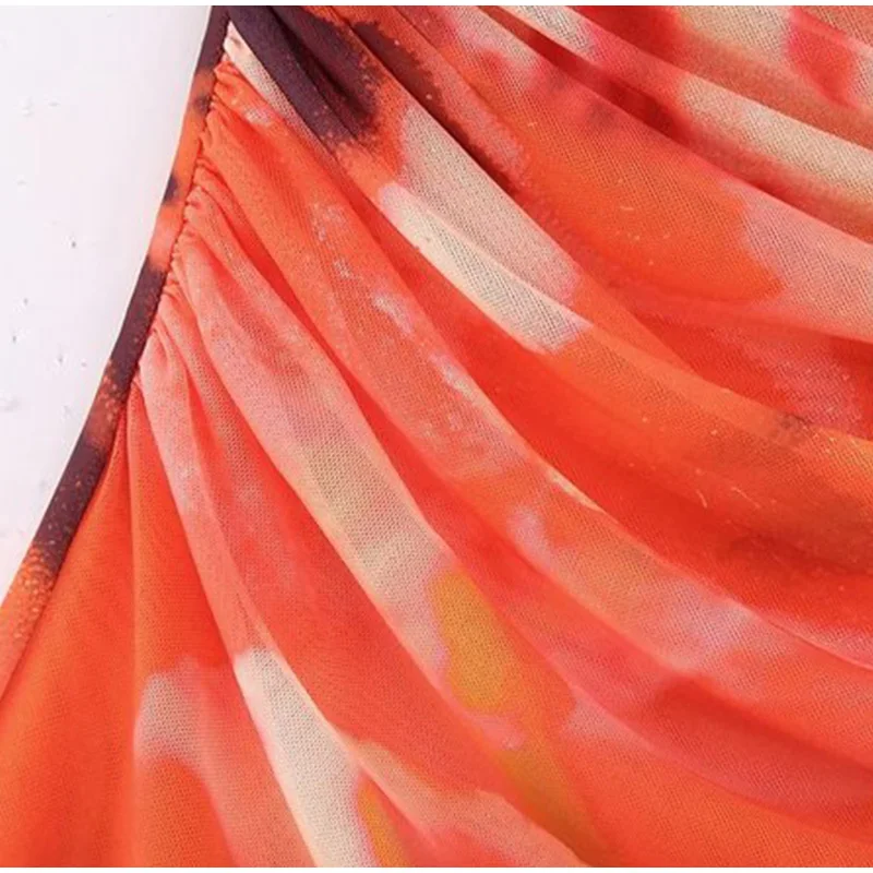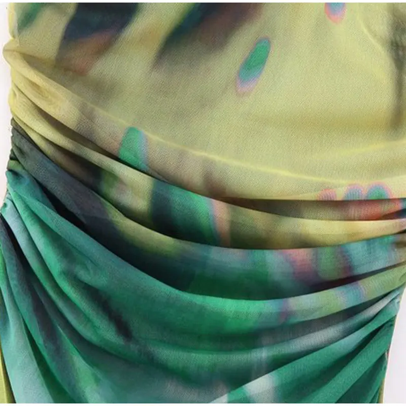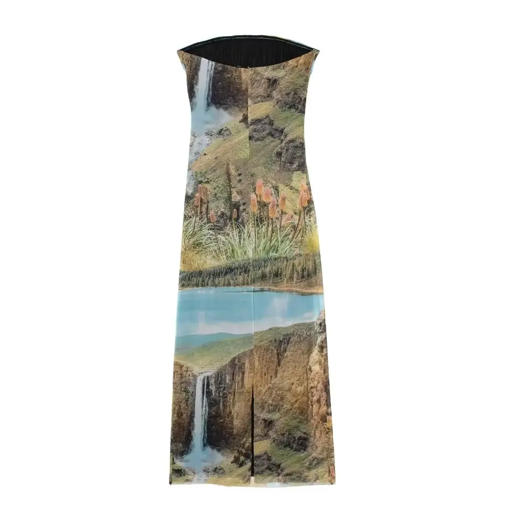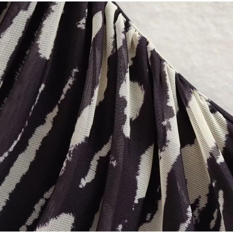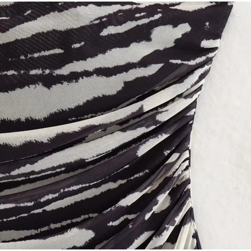 Lizakosht Women Summer Print Tulle Strapless Midi Dress Sexy Backless Sleeveless Bodycon Dresses Chic Chest Wrapping Pleated Beach Vestido