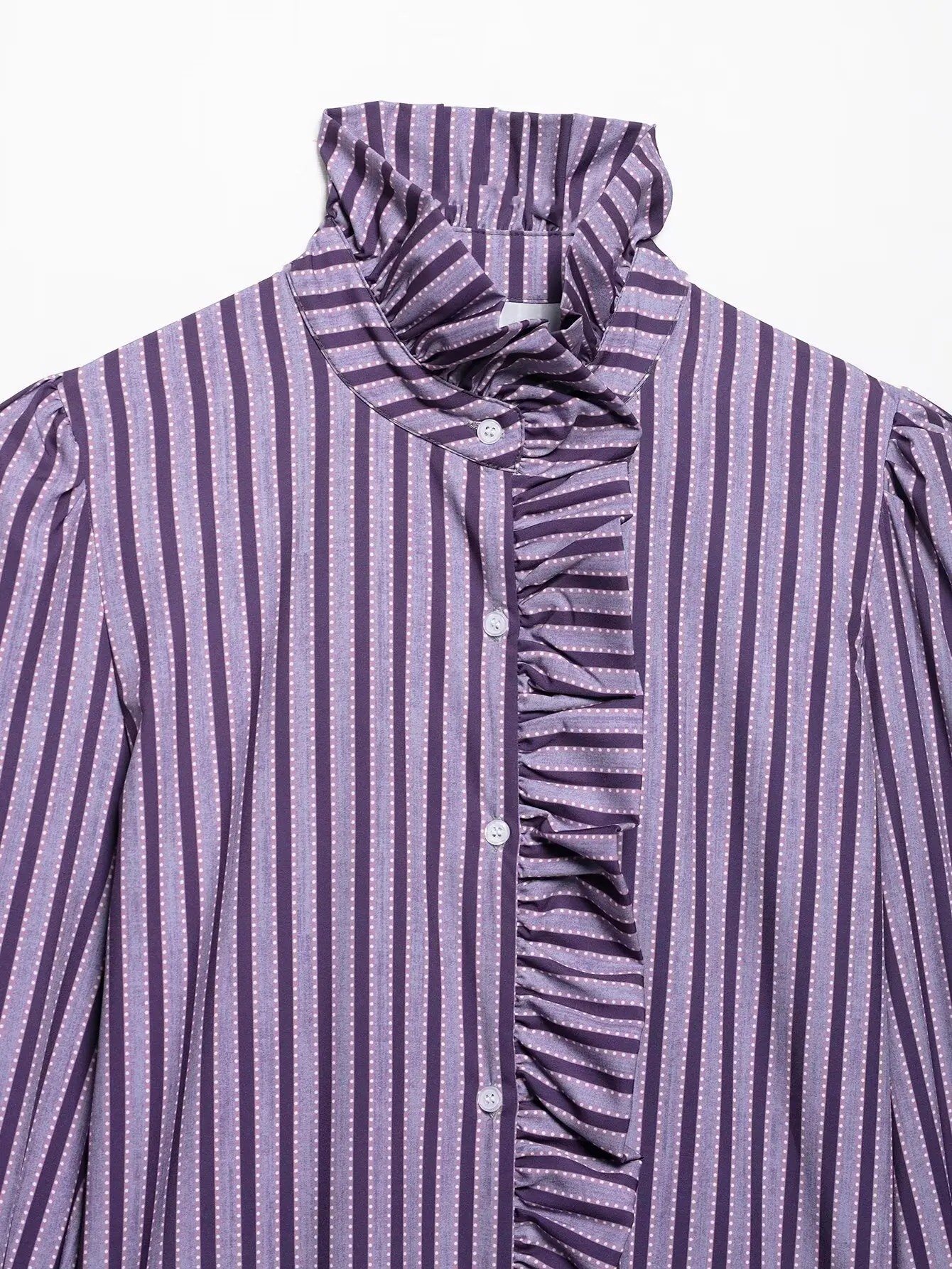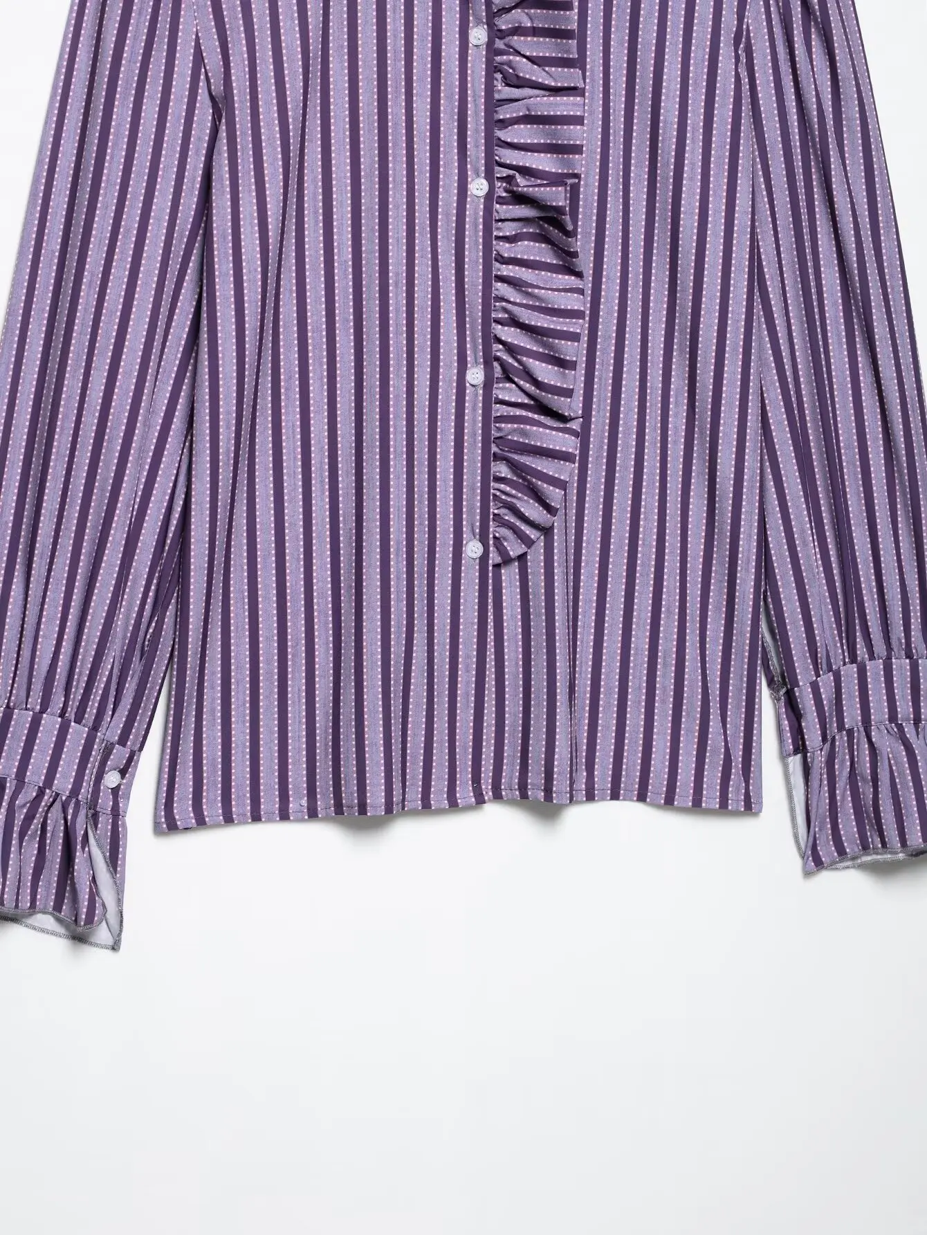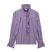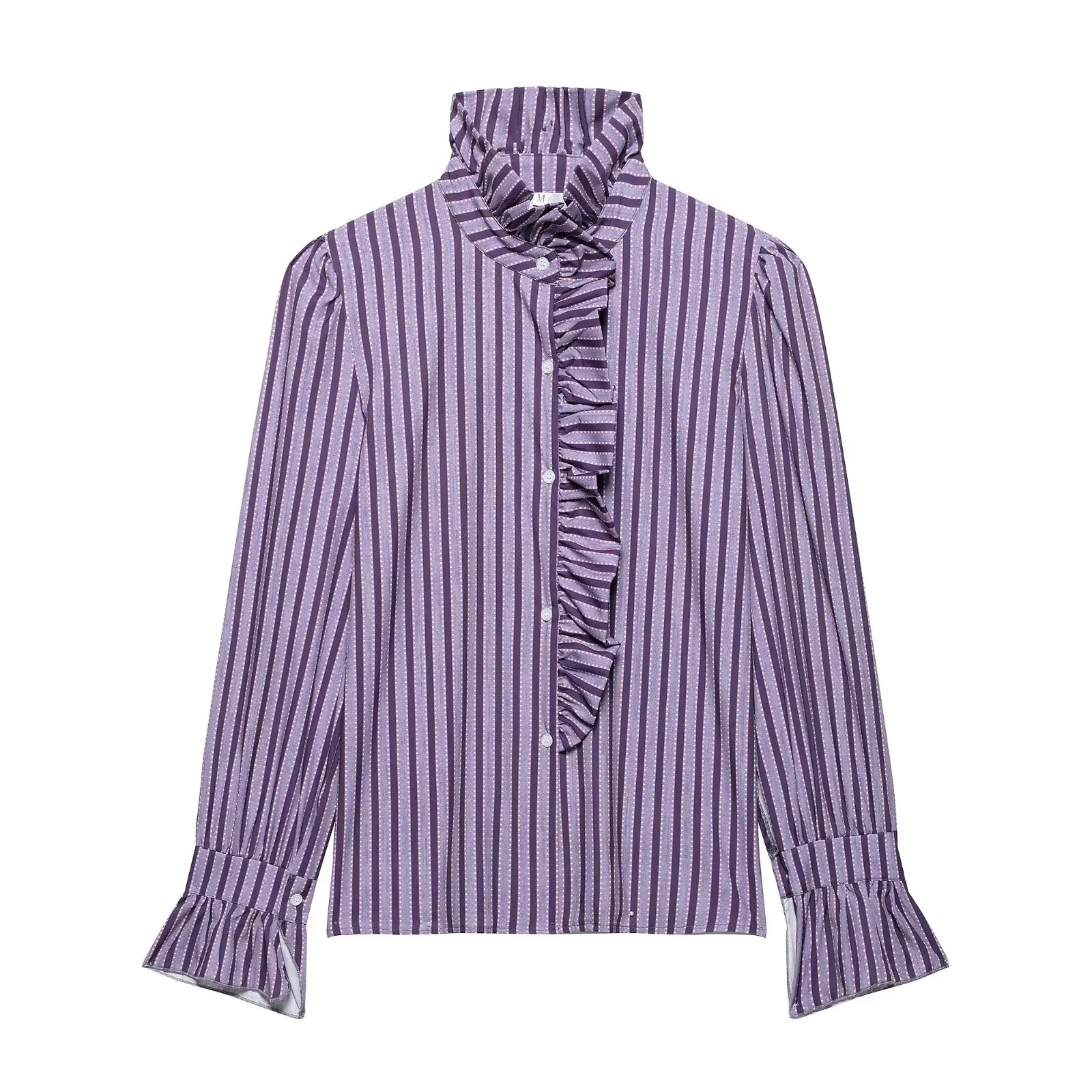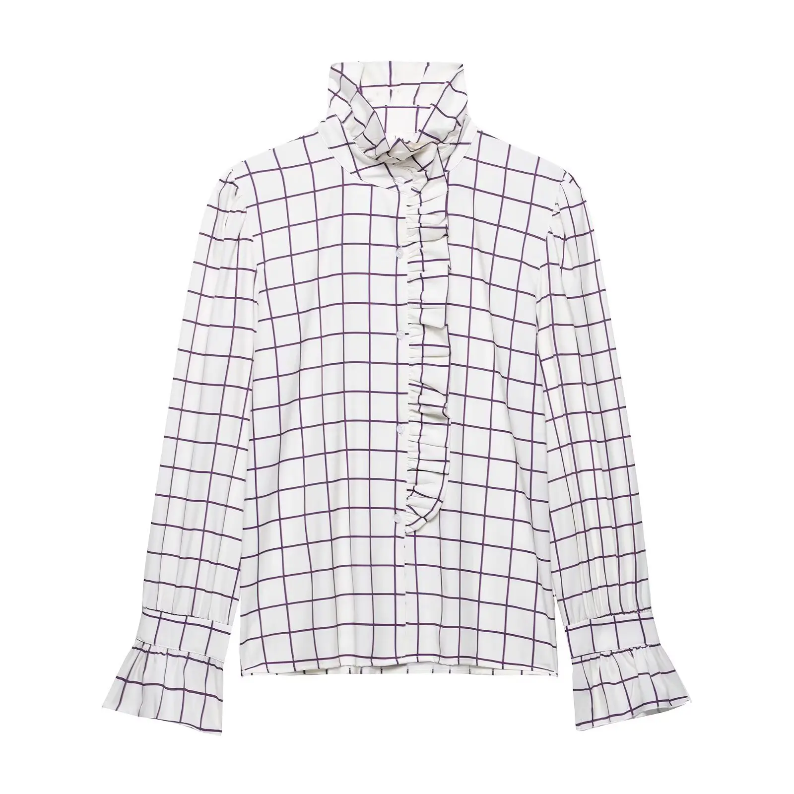 LIZAKOSHT - Women Vintage Ruffles Shirt Blouse Spring New Women Fashion Simple Casual Long Sleeve Shirt with Wood Ear Blouse Female Tops