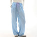 LIZAKOSHT - Women Wide Leg Pants Casual Loose Vertical Stripe Print Elastic Lounge Trousers with Pockets for Work Office Streetwear