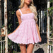 LIZAKOSHT  -  Women Y2K Tie Shoulder Mini Dress Bow Ruffle Flowy Babydoll Dress Floral Boho Sundress Summer Going Out Dress Holiday Party