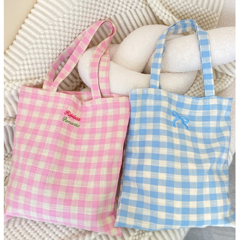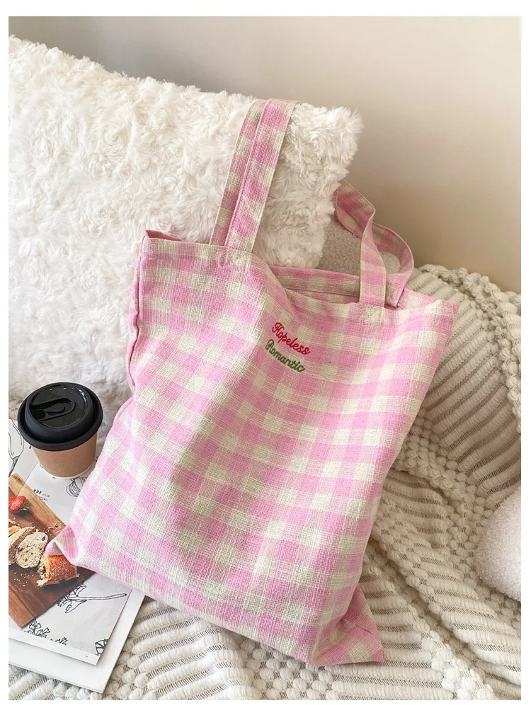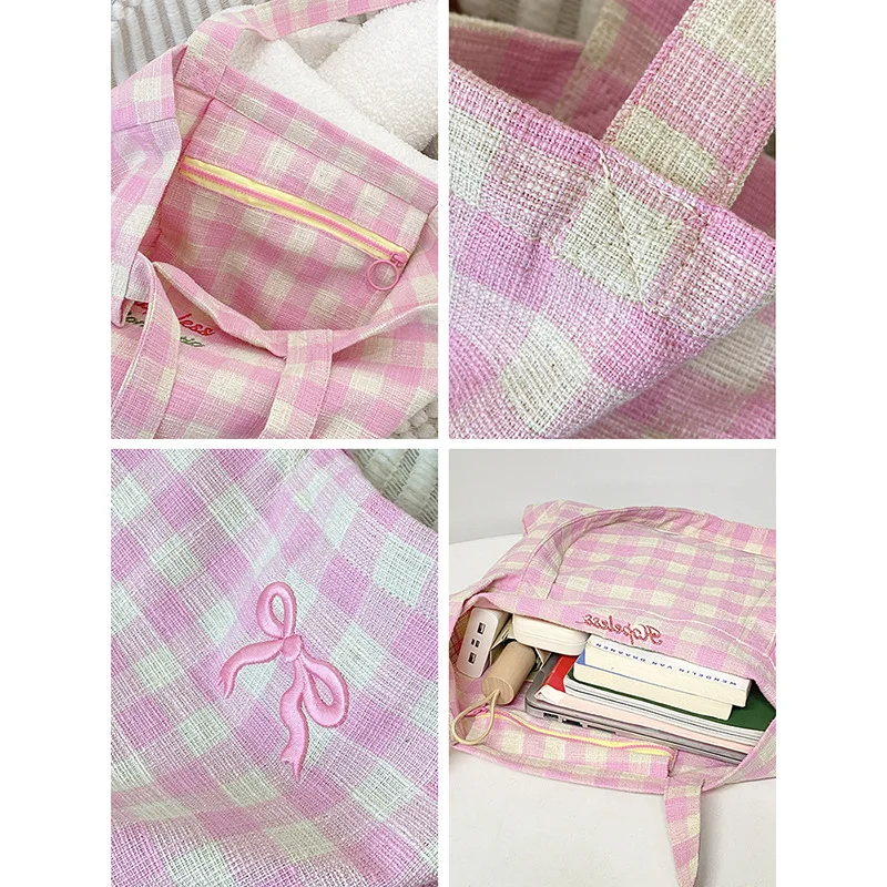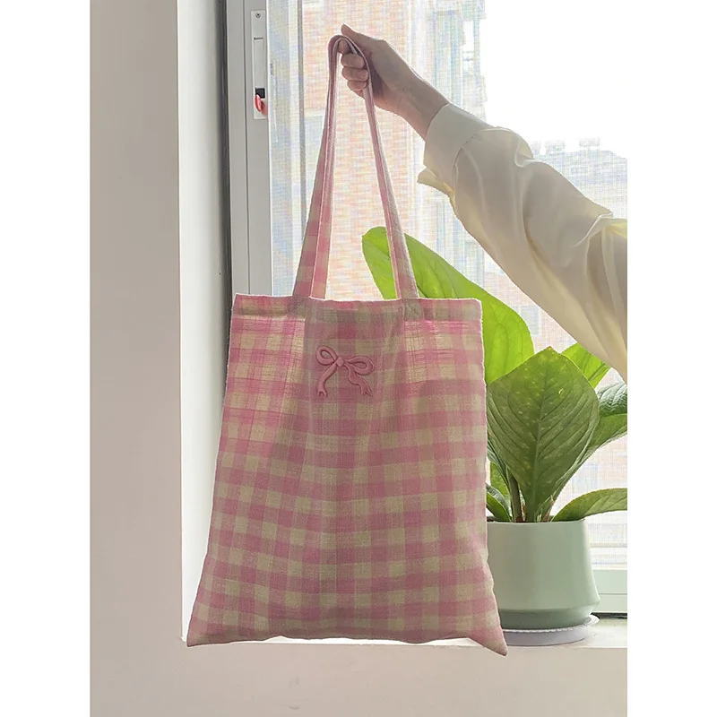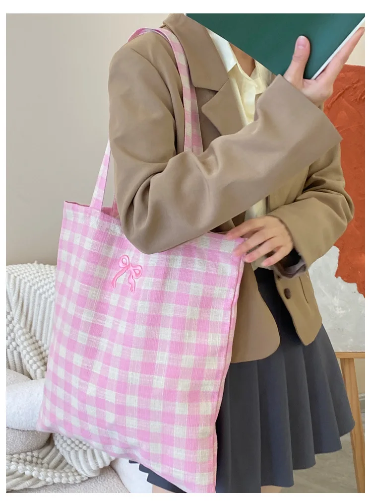 LIZAKOSHT - Women'S Canvas Plaid Printed Shoulder Bag Daily Commute Bag Large Capacity Supermarket Shopping Bag