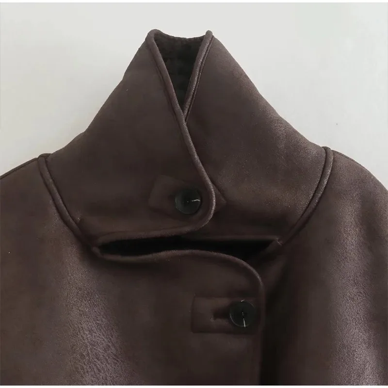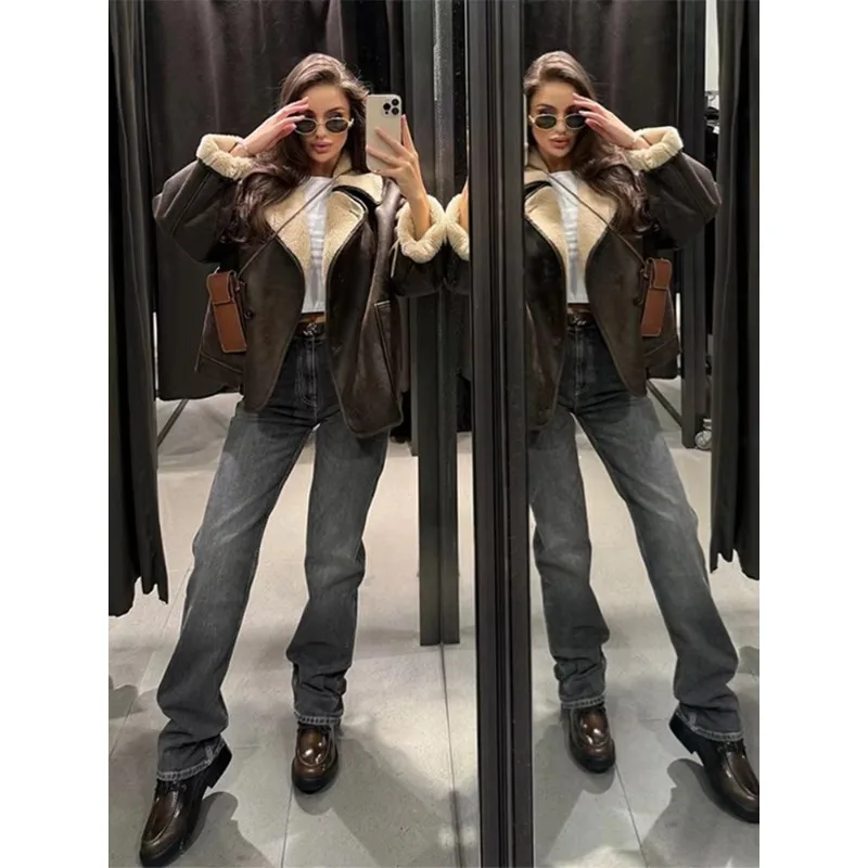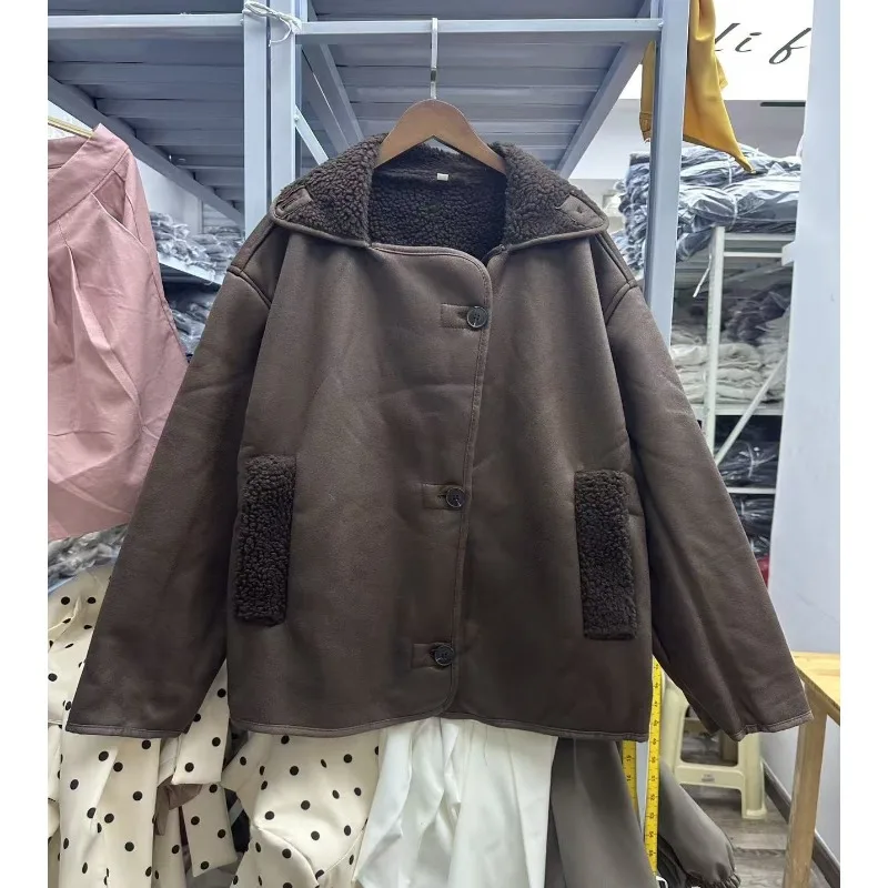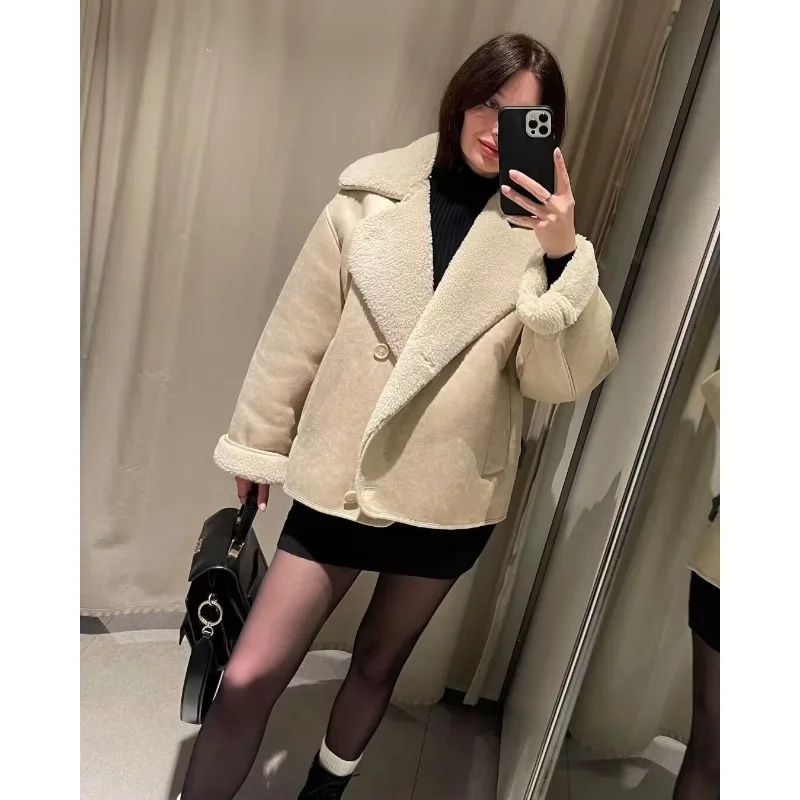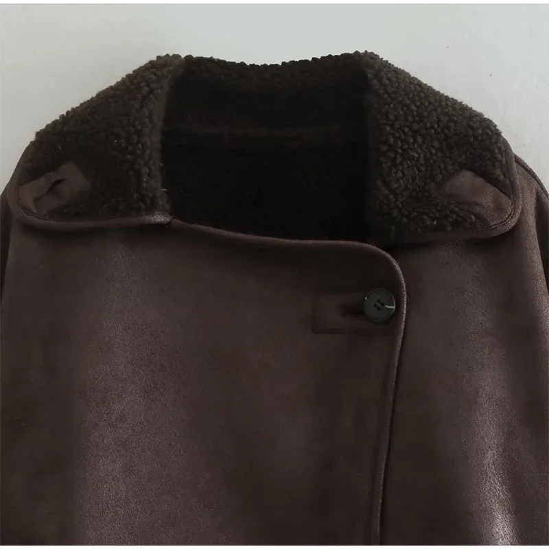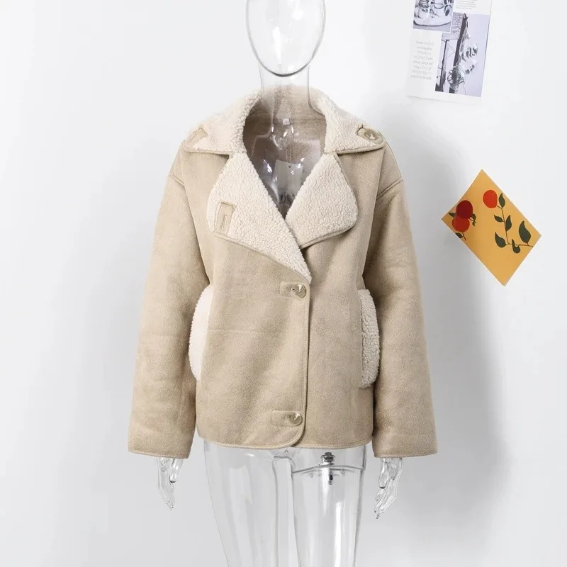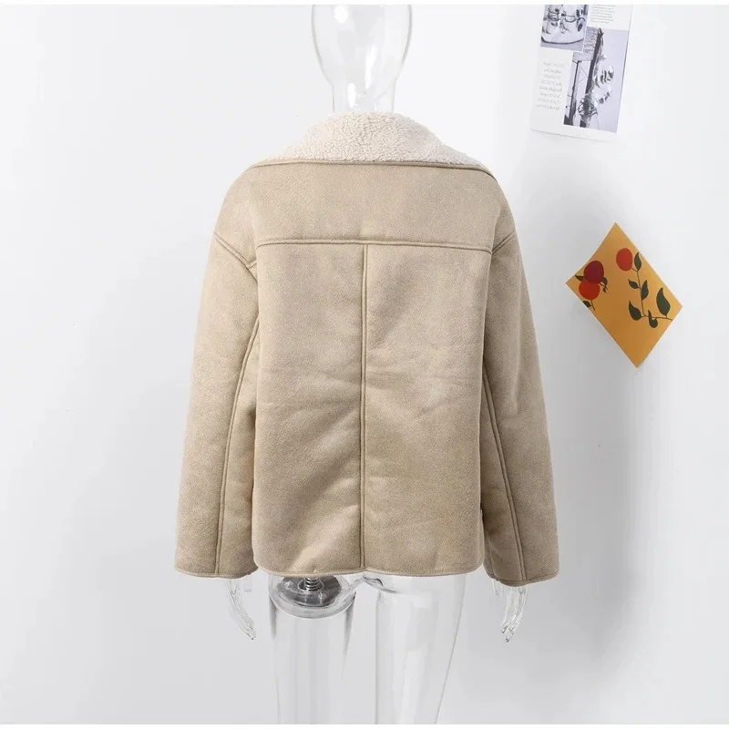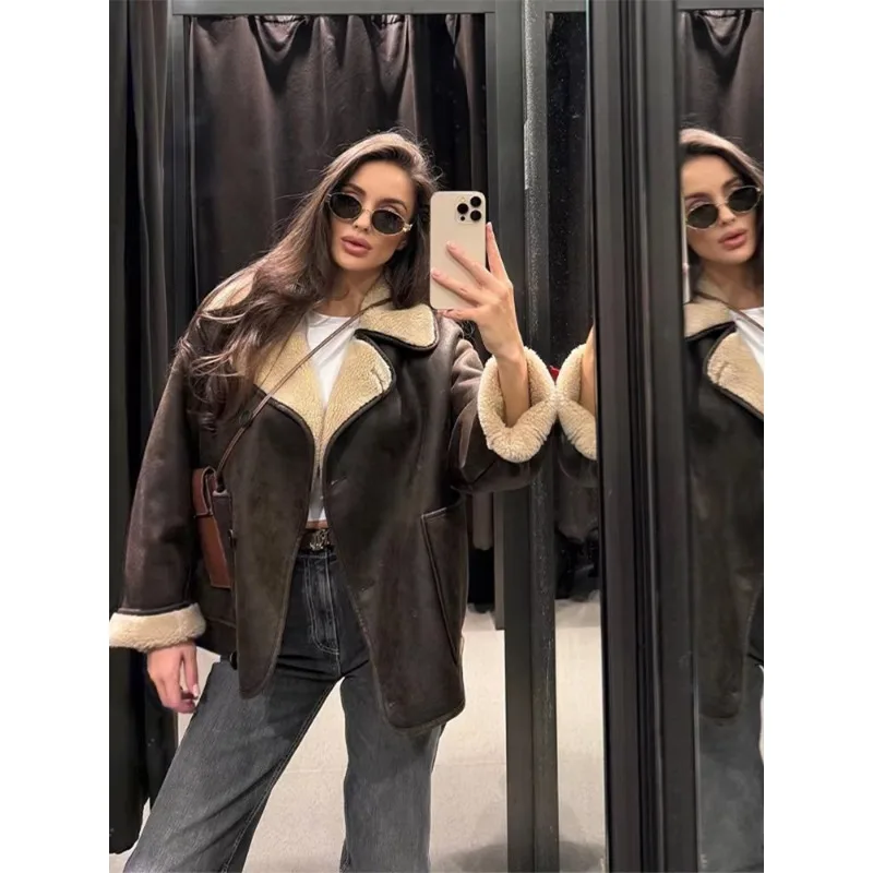 LIZAKOSHT - Women's Casual Fashion Comfortable Jacket 2025 Spring European and American Style Lapel Loose Fur Integrated Warm Jacket